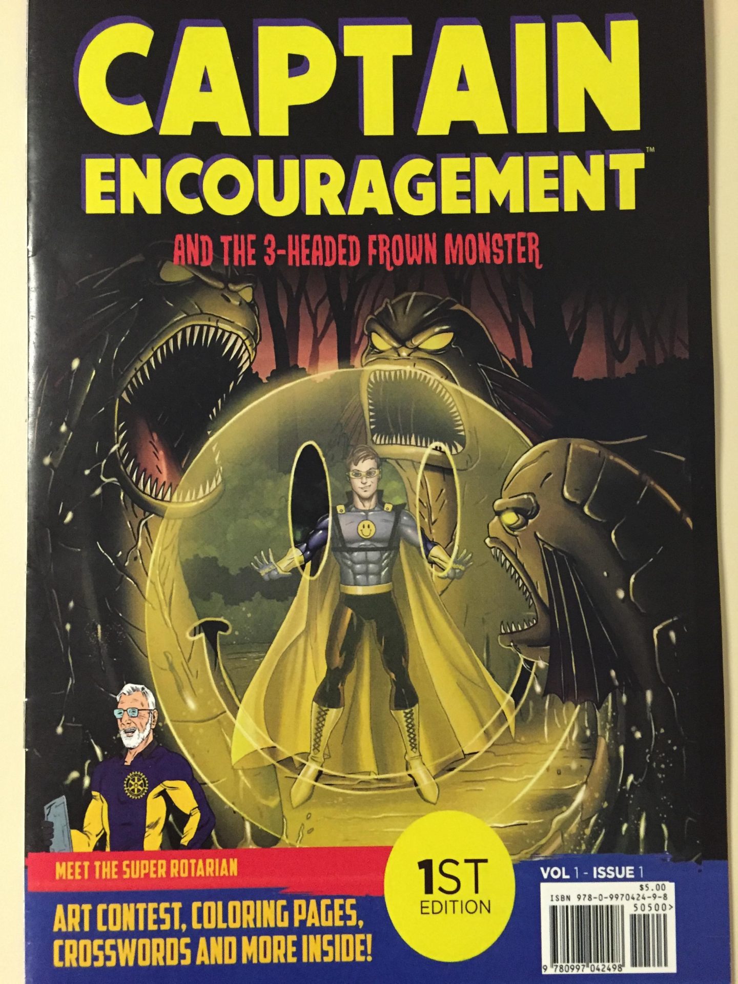This Saturday (tomorrow), Mother Lode residents will be able to meet-and-greet Captain Encouragement, along with the rest of his team at the Junction Shopping Center inside of Swirlz, Smoothies and Frozen Yogurt from 10 AM to 2 PM. The comic book will be for sale for just $5 and Captain Encouragement will sign the book for his fans.