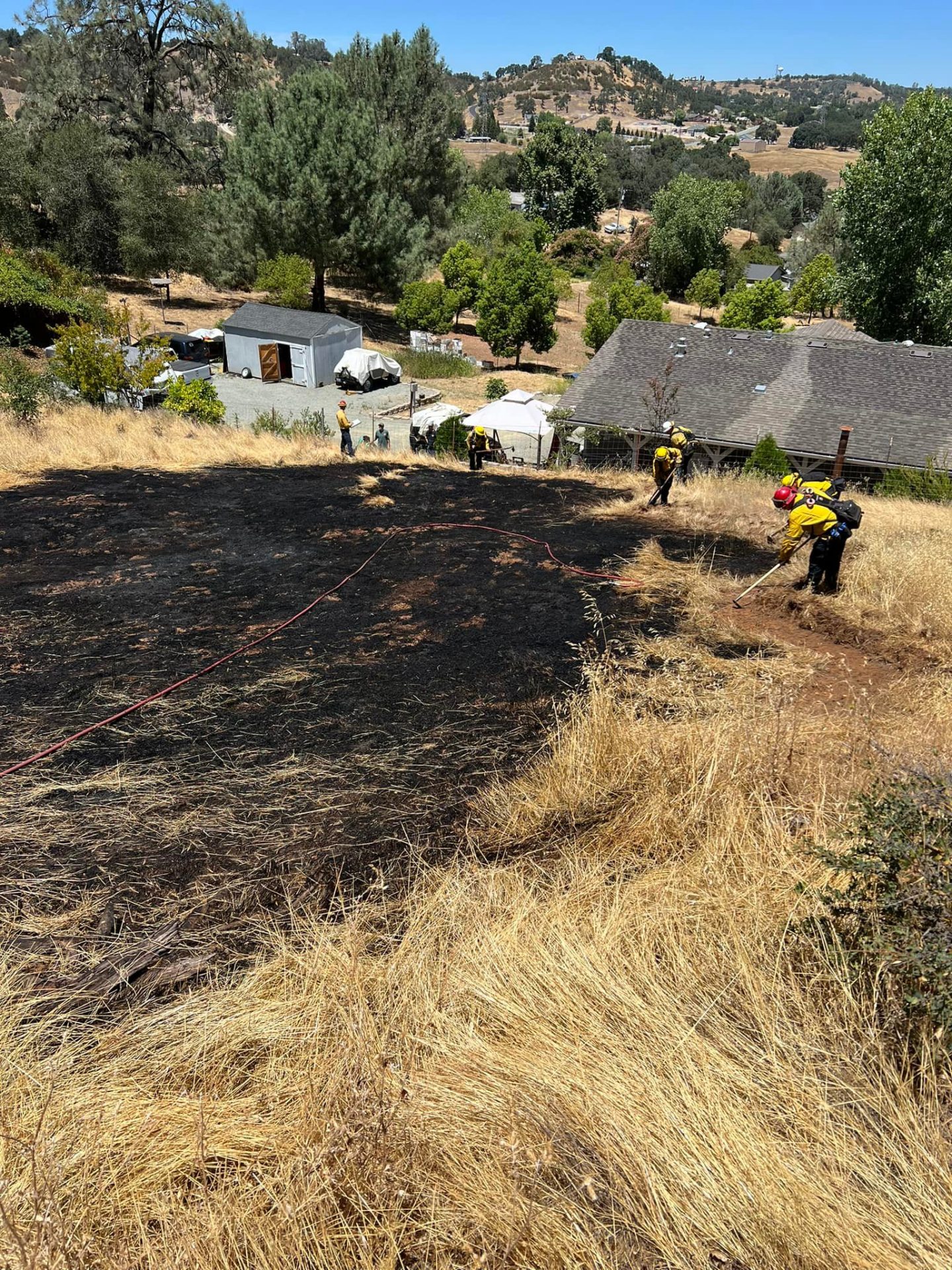 Valley Springs, CA–Â Calaveras Consolidated Firefighters were returning from a training exercise and spotted a column of smoke in Rancho Calaveras. The fire was located at 3266 Botfuher Road in Valley Springs. Calaveras Consolidated Firefighters from Jenny Lind and Valley Springs were able to stop the forward progress and contain the fire to under a quarter acre.
