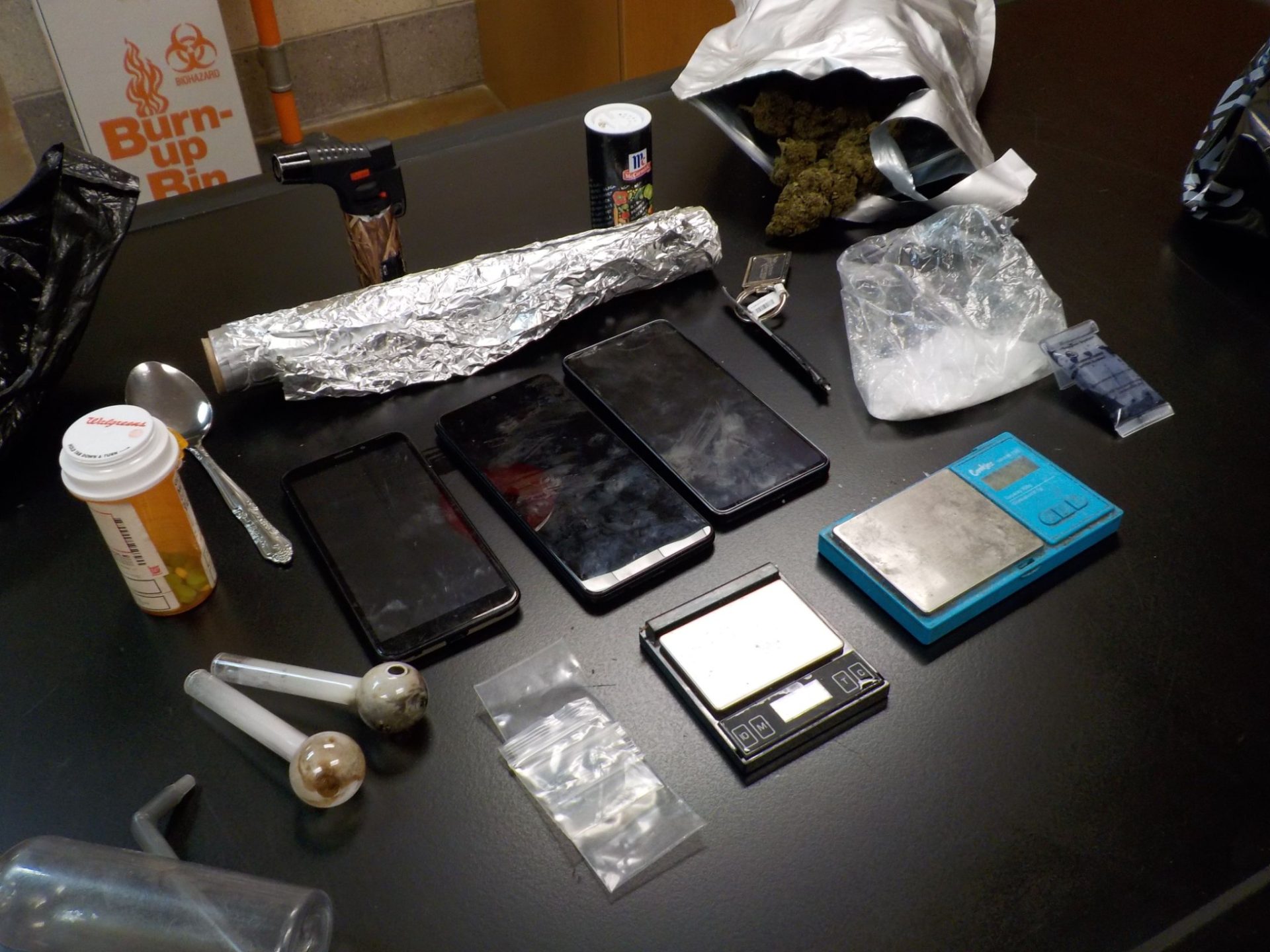 During questioning, Aguilera admitted to the theft, and the shoes were found in the SUV and returned. A record check revealed she had an outstanding arrest warrant out of San Joaquin County. A further search of the vehicle turned up 34 grams of methamphetamine, 326 grams of marijuana, 3 smoking pipes, prescription pills, and narcotics sales items. Aguilera was taken into custody without incident. The man was released at the scene and the vehicle was towed.