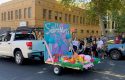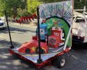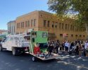 The streets of downtown Sonora are back open again after becoming crowded with Sonora High School fans at 2:00 pm this afternoon for the Homecoming Parade. Students in the Golden Regiment Band marched down Washington Street. The football team, cheerleaders, and homecoming court rode on various vehicles including the Tuolumne Sheriff’s Dept. MedCat. The theme of the four class floats is Disney movies with Seniors choosing the movie Monster’s Inc. Juniors the movie Cars, Sophomores are Finding Nemo, and Freshman have the Incredibles on their float. The local shops on Washington Street also have decorations.