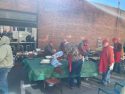 No official headcount takes place to tally the number of hungry bean fans but hundreds of people do line up on the sidewalks and gather afterward to enjoy the event.