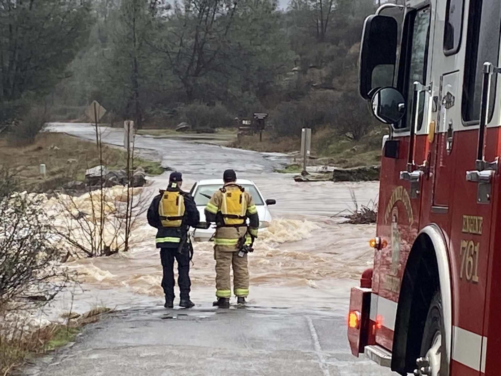 In Tuolumne County, a car was found abandoned yesterday morning on a flooded single-lane bridge on Red Hills Road near Sims Road in the Chinese Camp area. No one was located inside, and officers searched along the water’s edge for anyone possibly in the water but were unable to locate anyone. The CHP decided to temporarily leave the vehicle in the water due to the weather conditions. The roadway remains closed this morning, but the CHP hopes to have it removed today so the roadway can be reopened.