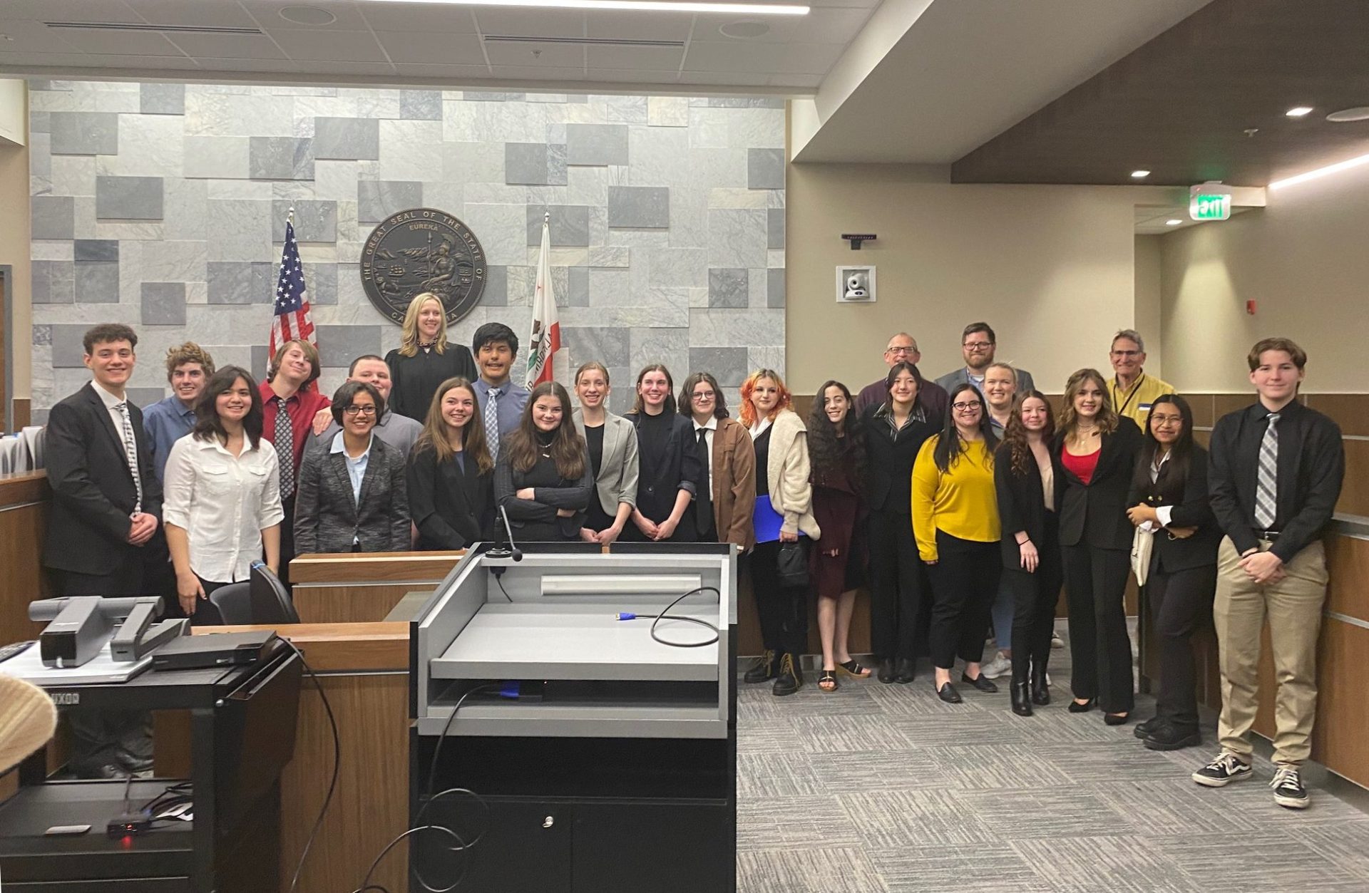 Sonora, CA– The Tuolumne County Superintendent of Schools Office hosted the fifth annual Tuolumne County Mock Trial Competition at the Tuolumne Courthouse. The Mock Trial program features high school students from three local schools, Sonora High School, Summerville High School and Tioga High School. Each high school had three groups of students, assisted by attorney coaches, arguing this year’s fictional case three times with case details created by the Constitutional Rights Foundation. Each school got a turn representing the prosecution or defense team. Students operate as attorneys, witnesses, a bailiff, jewelry expert, clerk, journalist, and courtroom artist.