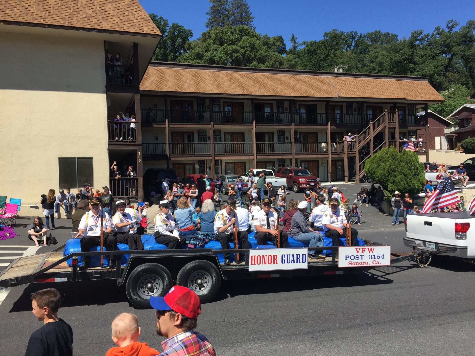 Cowboys and girls riding horses, marching bands, flashy cars, fire engines, kids, robots, dogs, politicians and plenty of floats rolled down Sonora’s main drag to the delight of the revelers. Many along the roadway cheered on and danced to their favorite band, among them; the Sonora High Golden Regiment Band, the Summerville High Orange Crush, Curtis Creek Mustang Band, the Columbia Elementary Forty Niners and the Soulsbyville Elementary Marching Falcons. A whole host of parade pictures can be viewed in the image box. The parade line-up is posted here.