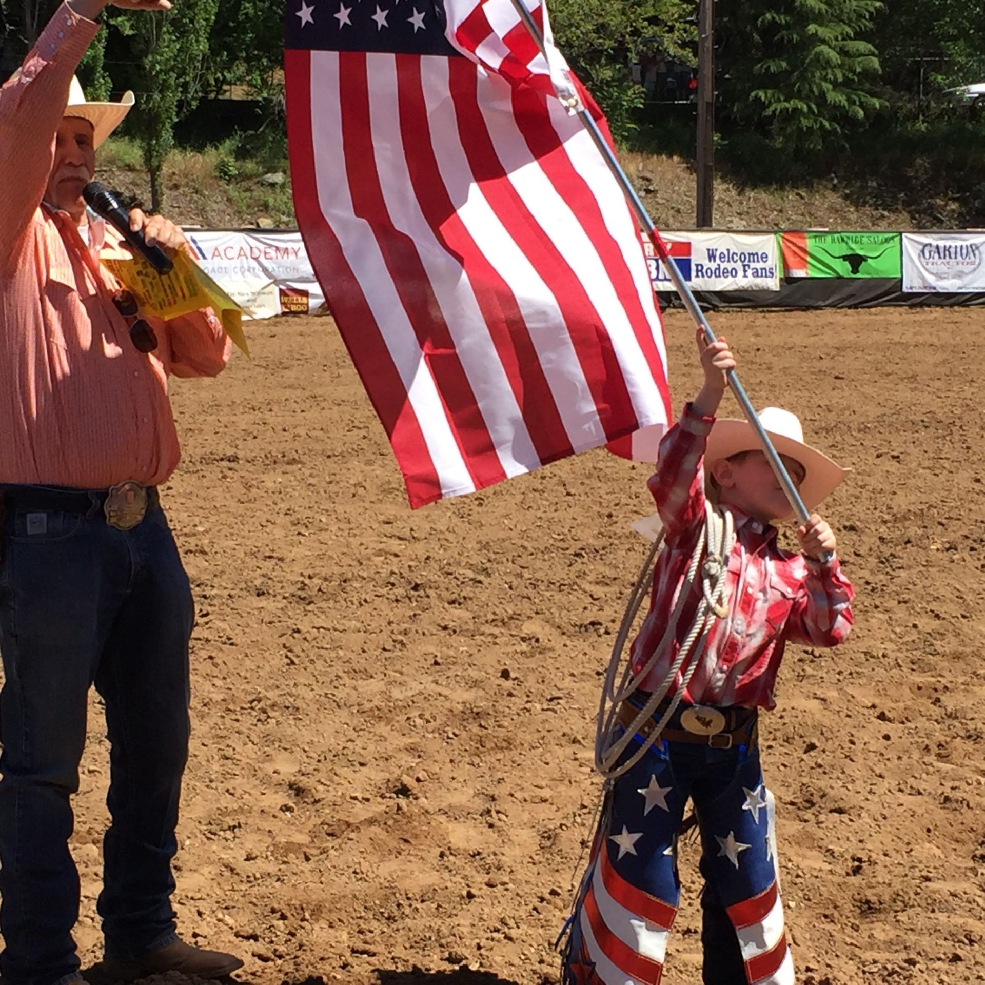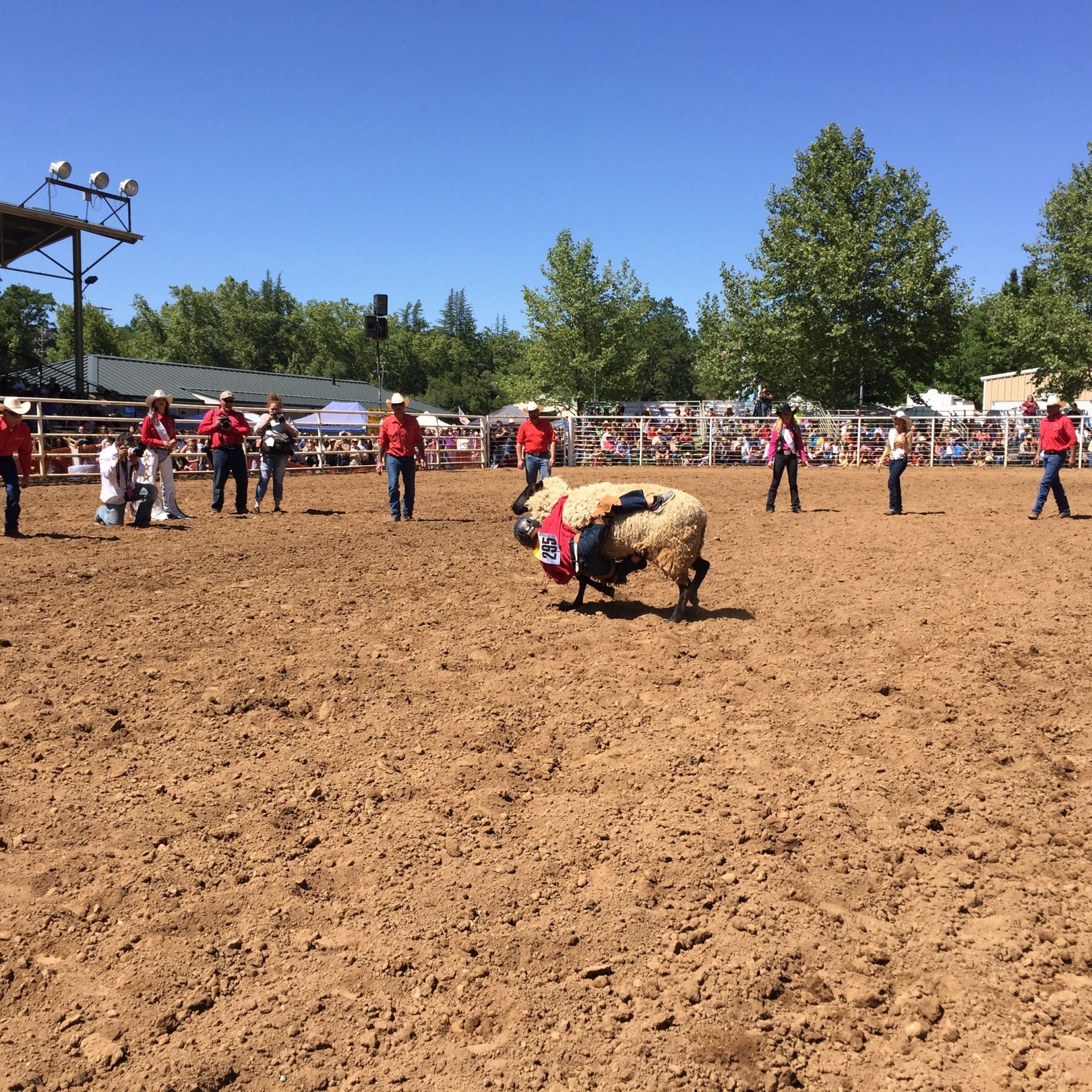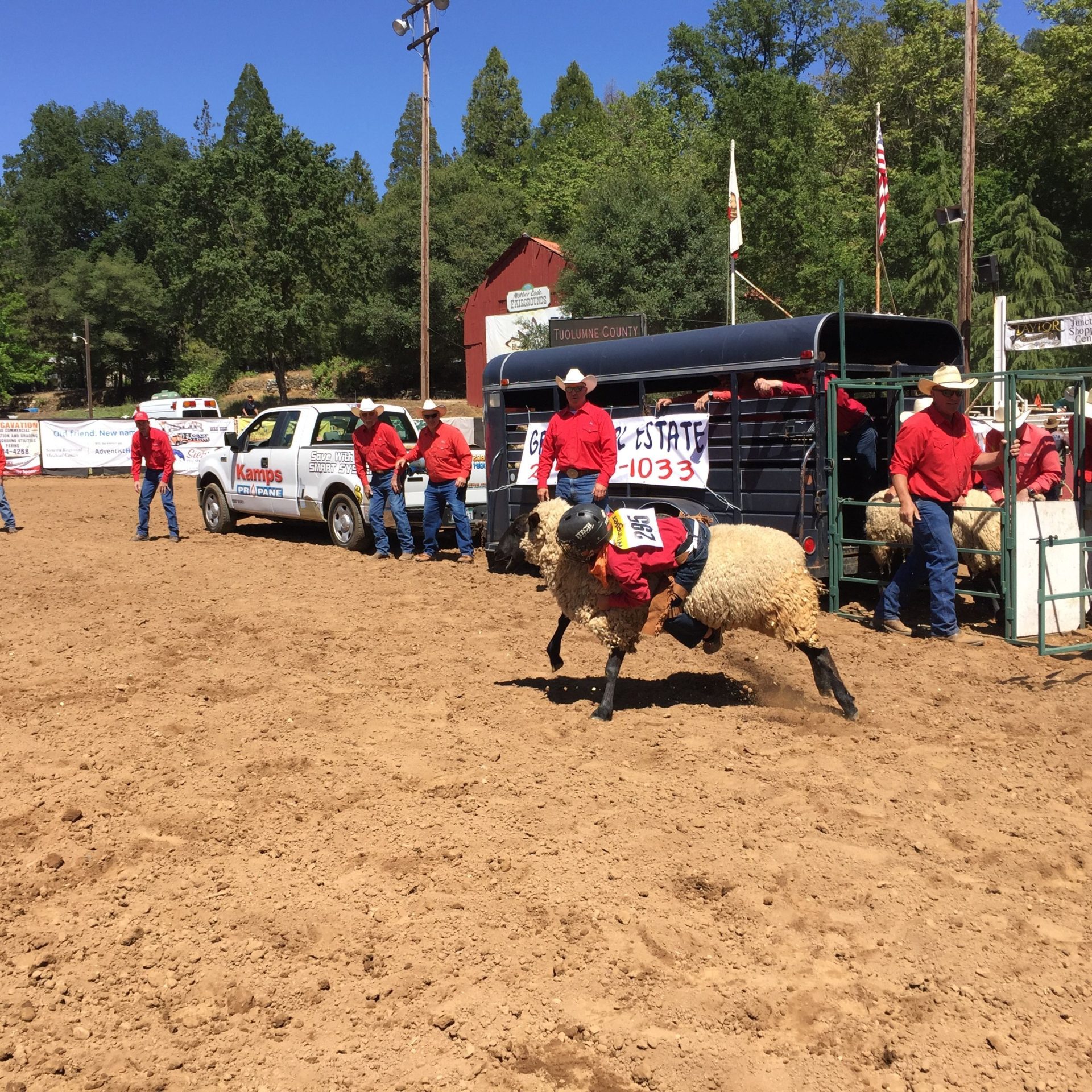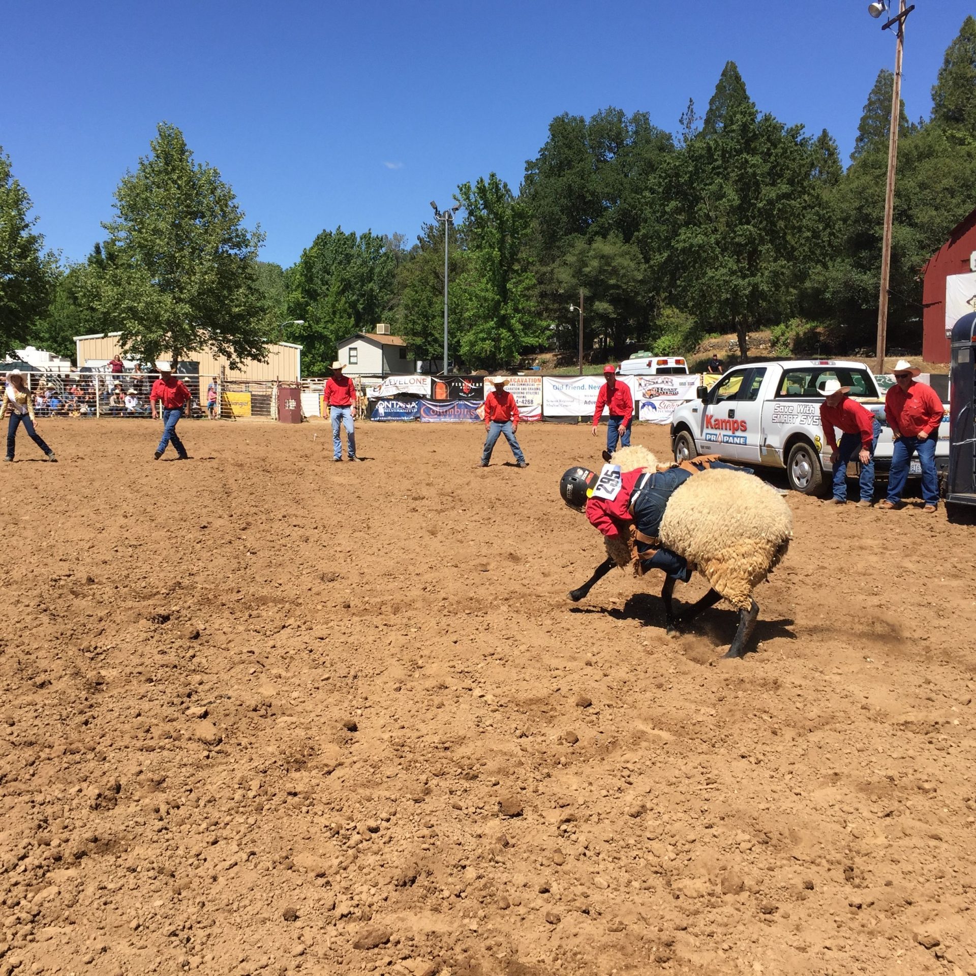 Calf roping, barrel racing, bronc and bull riding brought plenty of cheers, clapping and stomping from fans in the grandstands. A “Team Bronc Riding” event kicked off the rodeo.(*Highlighted words are video.) One little cowboy looked especially sharp in his all red, white and blue attire, that fetched him the “Best Dressed Mutton Buster.” However, the best mutton ride came from Ryan Lawson of Sonora, who hung on for dear life! Click here for video of Mutton Busting ride.