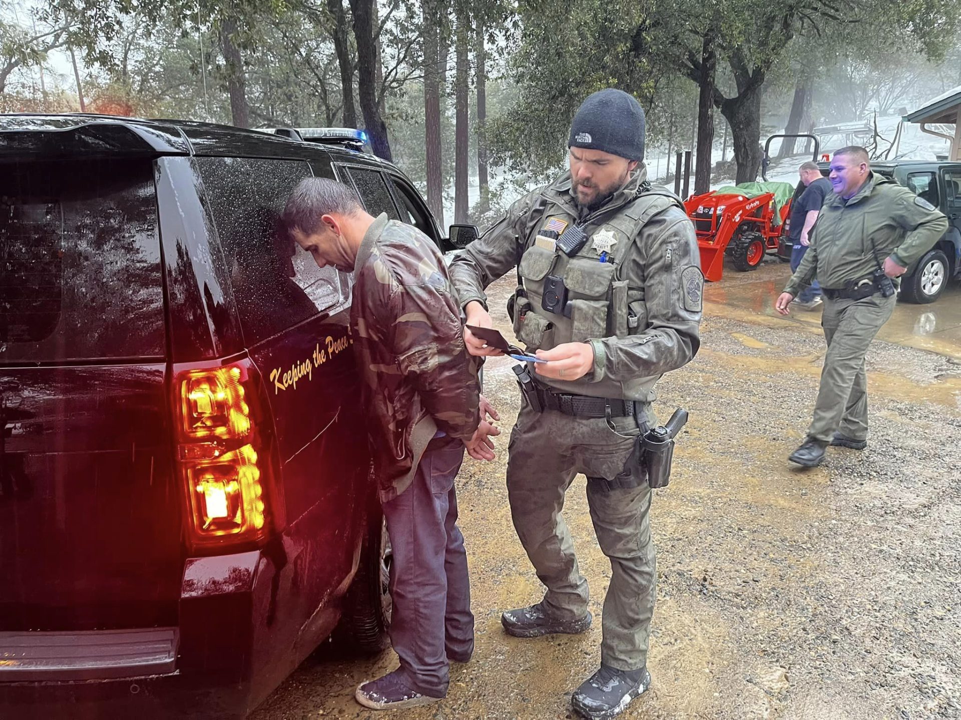Several roadways in the Mariposa area were closed due to snow, ice and flooding, with sheriff’s deputies manning them. Sheriff’s officials report that the suspect, 46-year-old Joseph Jackson Kling from North Fork, California, tried to “hide” from deputies “by driving down flooded, snow-packed roads.” They caught up with Kling in the 5800 block of Oak Drive in Mariposa near Tenaya Trail Road and south of Highway 49, where the truck became disabled in the mud, as pictured in the image box.