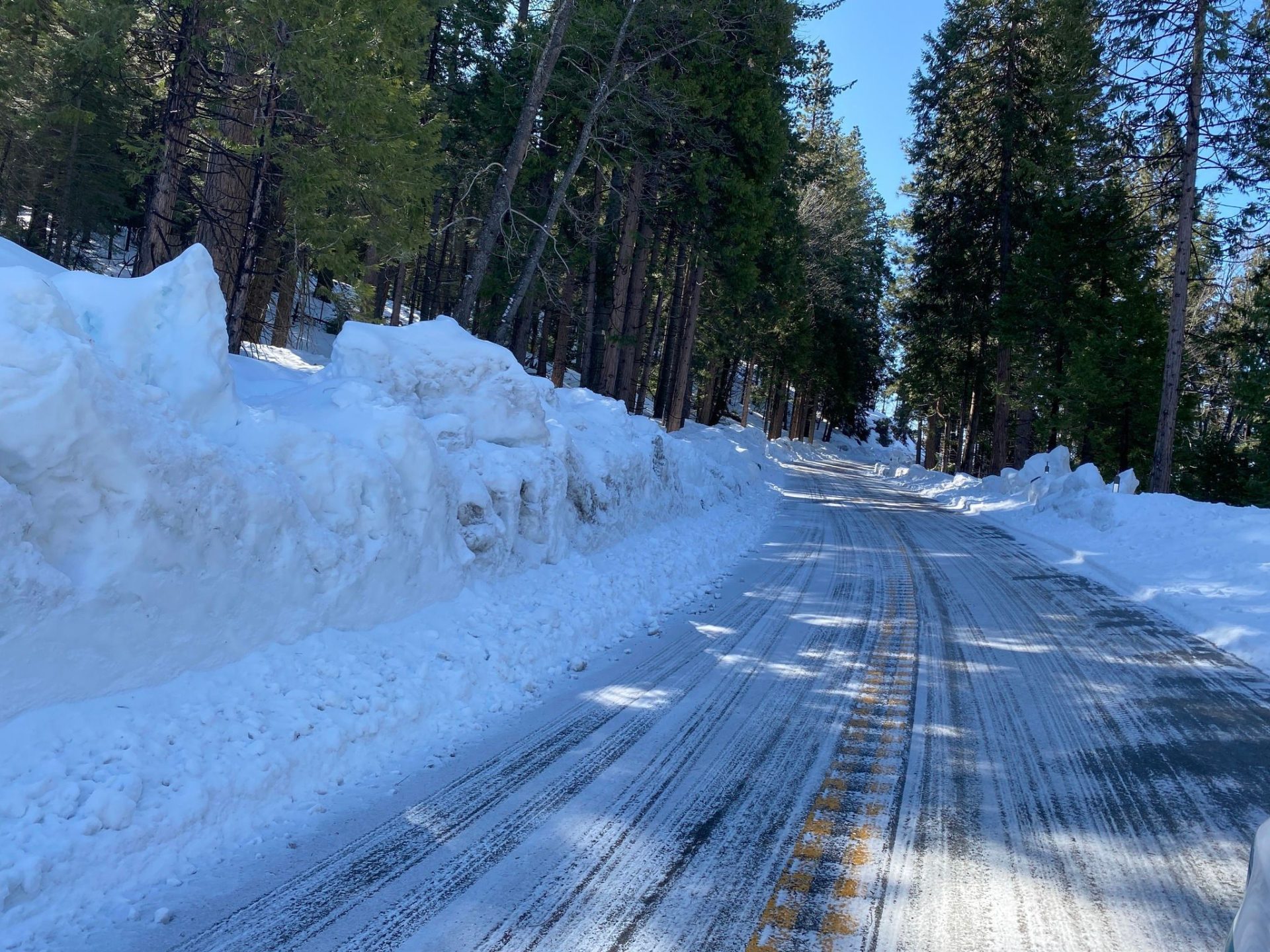 Park officials advise, “The hike to the Mariposa Grove is four miles round trip with 500 feet of elevation change. The road is very icy; traction devices for your shoes will be useful. Due to road damage, we are unable to service the vault toilets at the arrival area.”