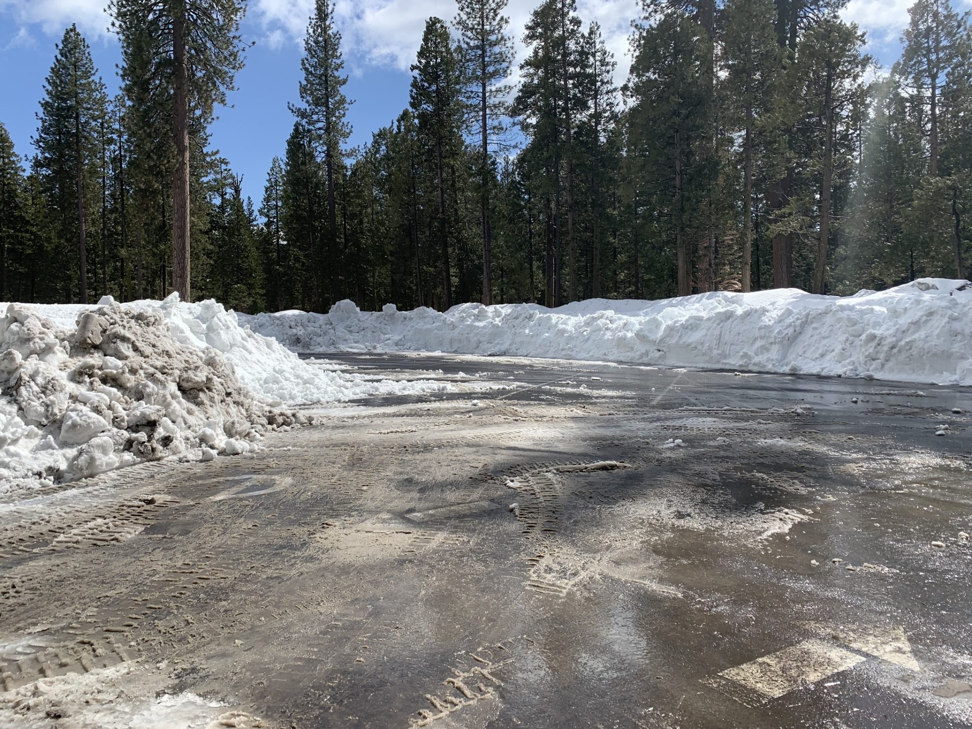 Forest officials update that the snow plows have cleared about 60 parking spots and that 3 of the restrooms are open but only on one side due to the deep snow, as can be seen in the image box photos. There remains no access to the bathrooms on the south shore. Snow continues to cover many of the walkways as well.