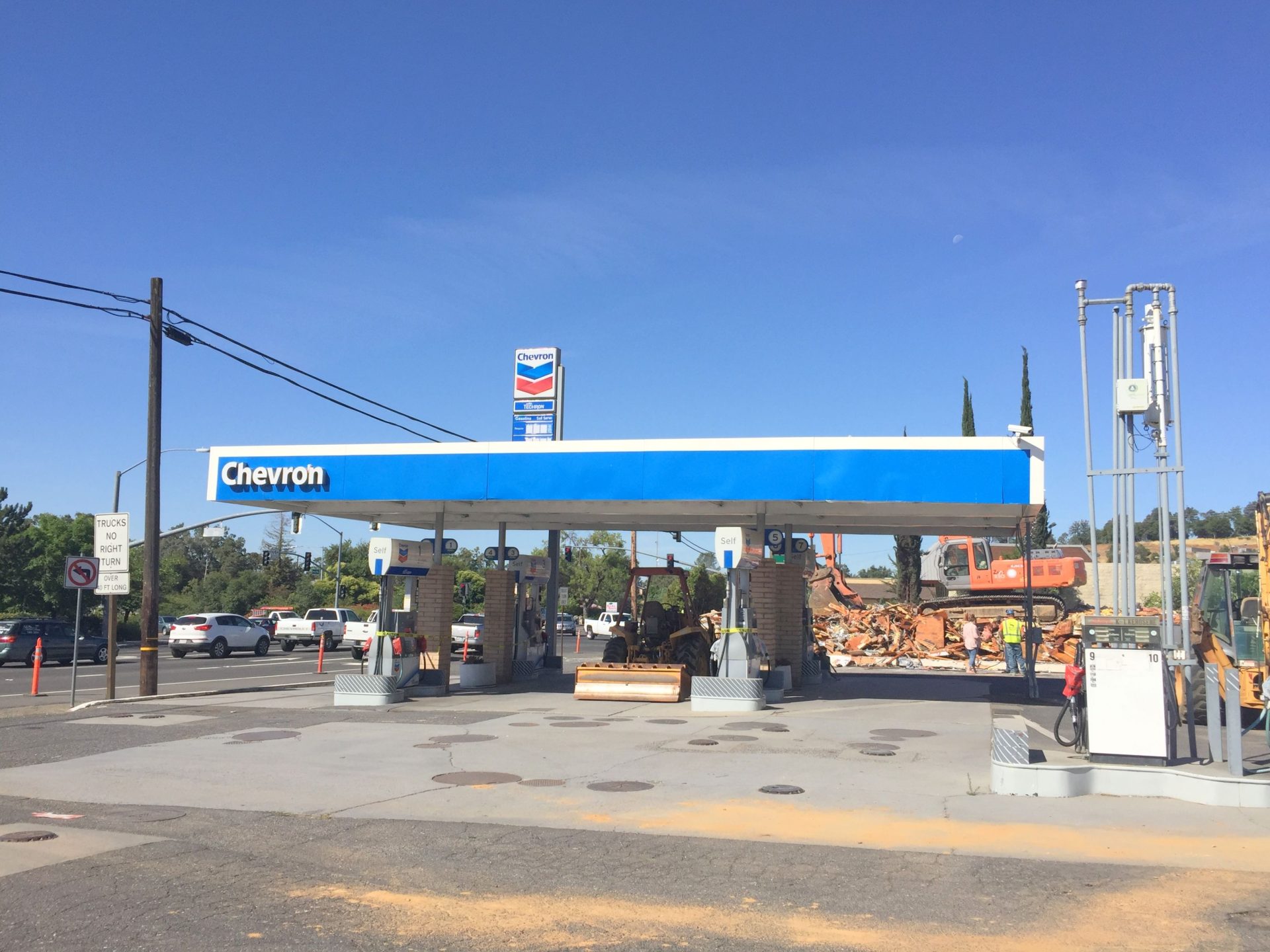 Sonora, CA – The Corner Gas Station building has been reduced to rubble, making way for the City of Sonora’s second phase of the Greenley Road/Mono Way Intersection Project.