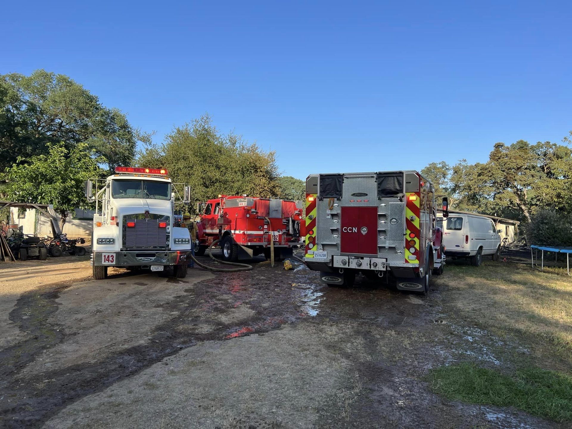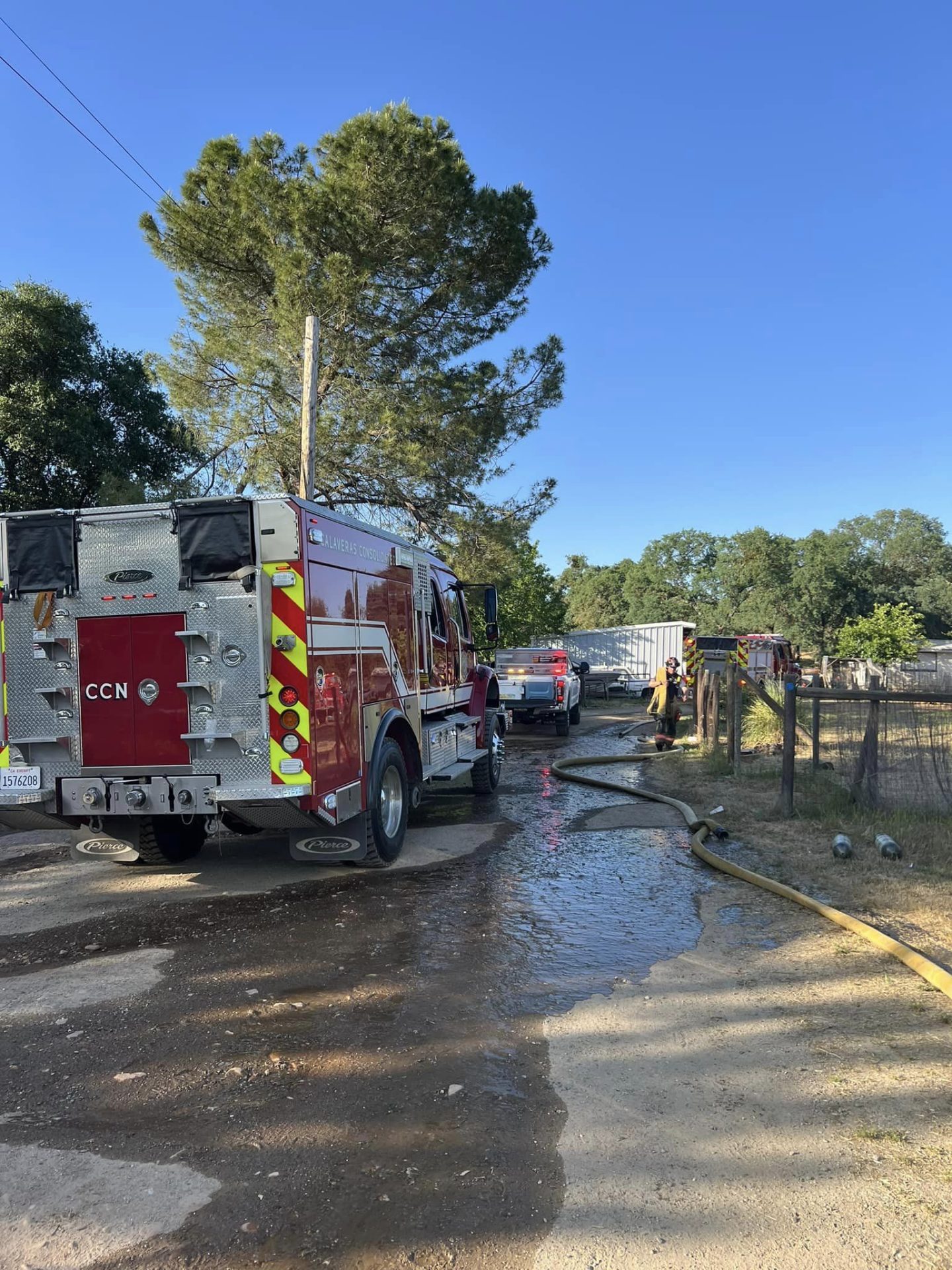 Responding to the scene located in the 7800 block of Highway 12 near Sawmill Street and Camanche Reservoir were crews from Calaveras Consolidated, Clements, CalFire, and San Andreas Fire. Once on scene, they found “heavy fire conditions” in the home, with the flames spreading to nearby vegetation. Luckily, firefighters were able to rescue two dogs from the residence and return them to the family. No further details on the pooches were available.