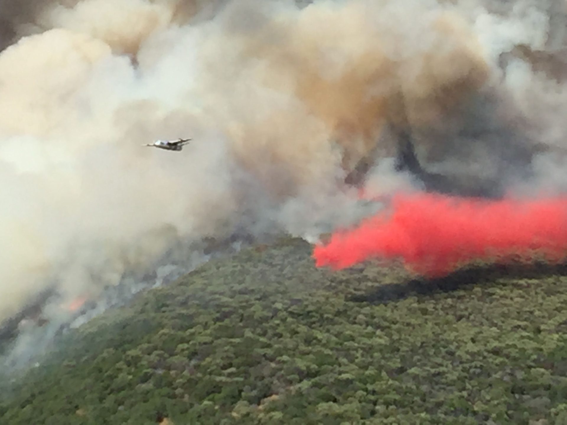 Update at 6:15 p.m.: CAL Fire now reports the Twist Fire is 150 acres. Structures near Hog Mountain are threatened. High temps, low humidity and flashy fuels are creating rapid moving flames, according to CAL Fire.