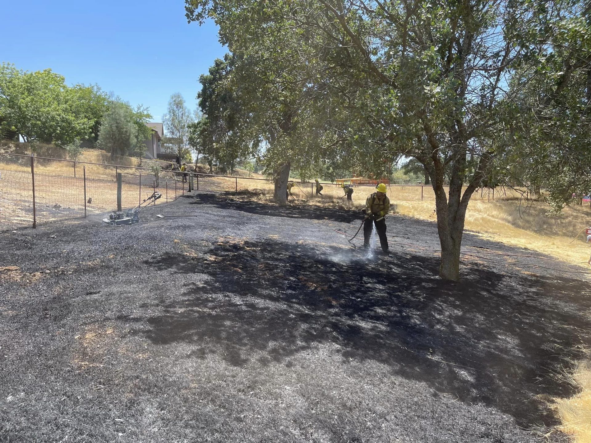 Calaveras Consolidated Fire (CCF) and CalFire battled not only the blaze but also sizzling temperatures. CCF officials relayed the fire was started by a mower. To emphasize this danger and the possible consequences, they added, in all caps, “FIREFIGHTERS WANT YOU TO PLEASE STOP MOWING IN DRY GRASS. IF YOU START THE FIRE YOU WILL BE CITED!”