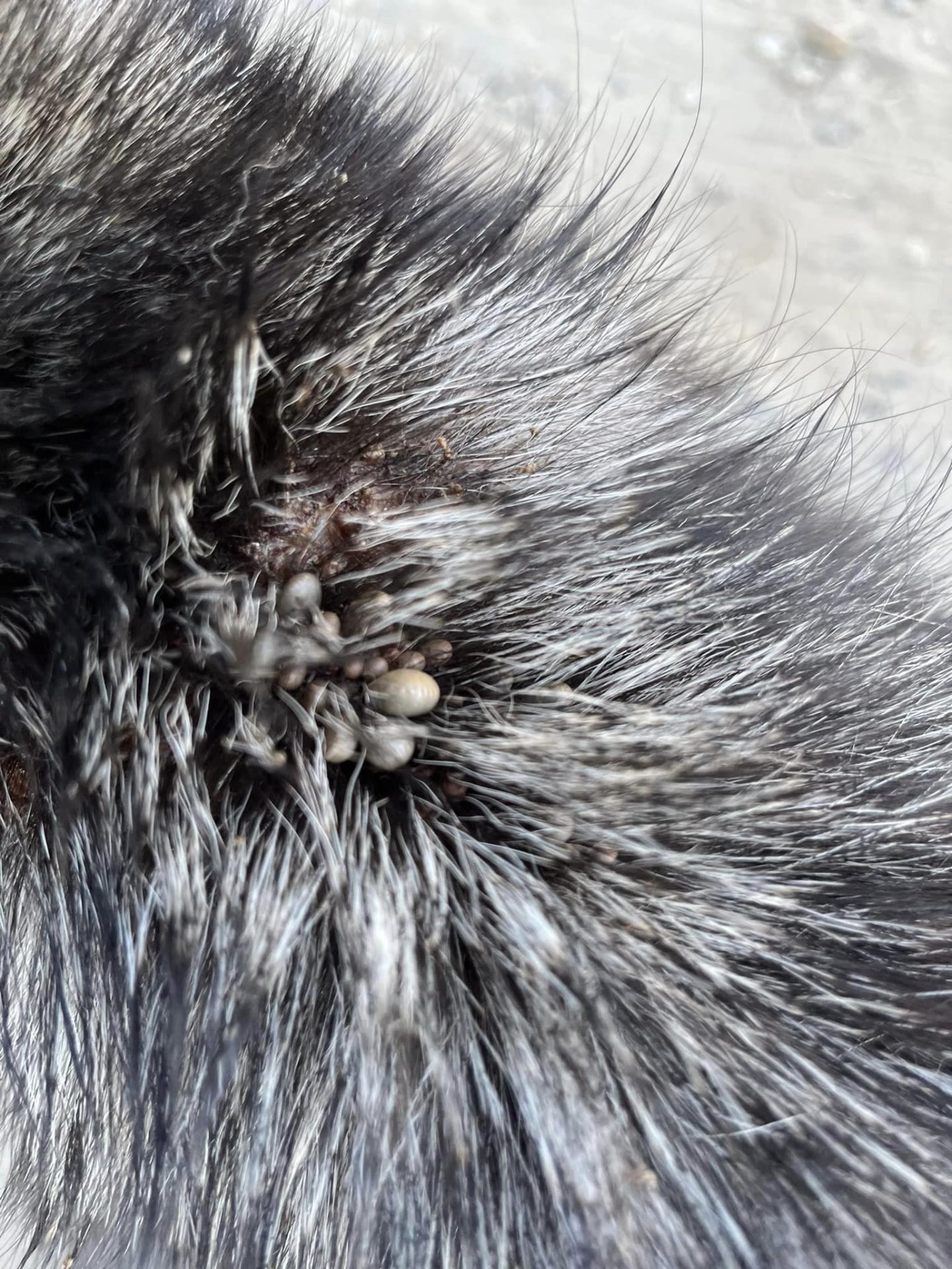 “Each dog had copious amounts of ticks, so many that at a glance they looked like large tumors. That number of ticks caused severe anemia. Many of the dogs had rope burns into the third layer of skin around their necks from being tied up,” stated sheriff’s officials.