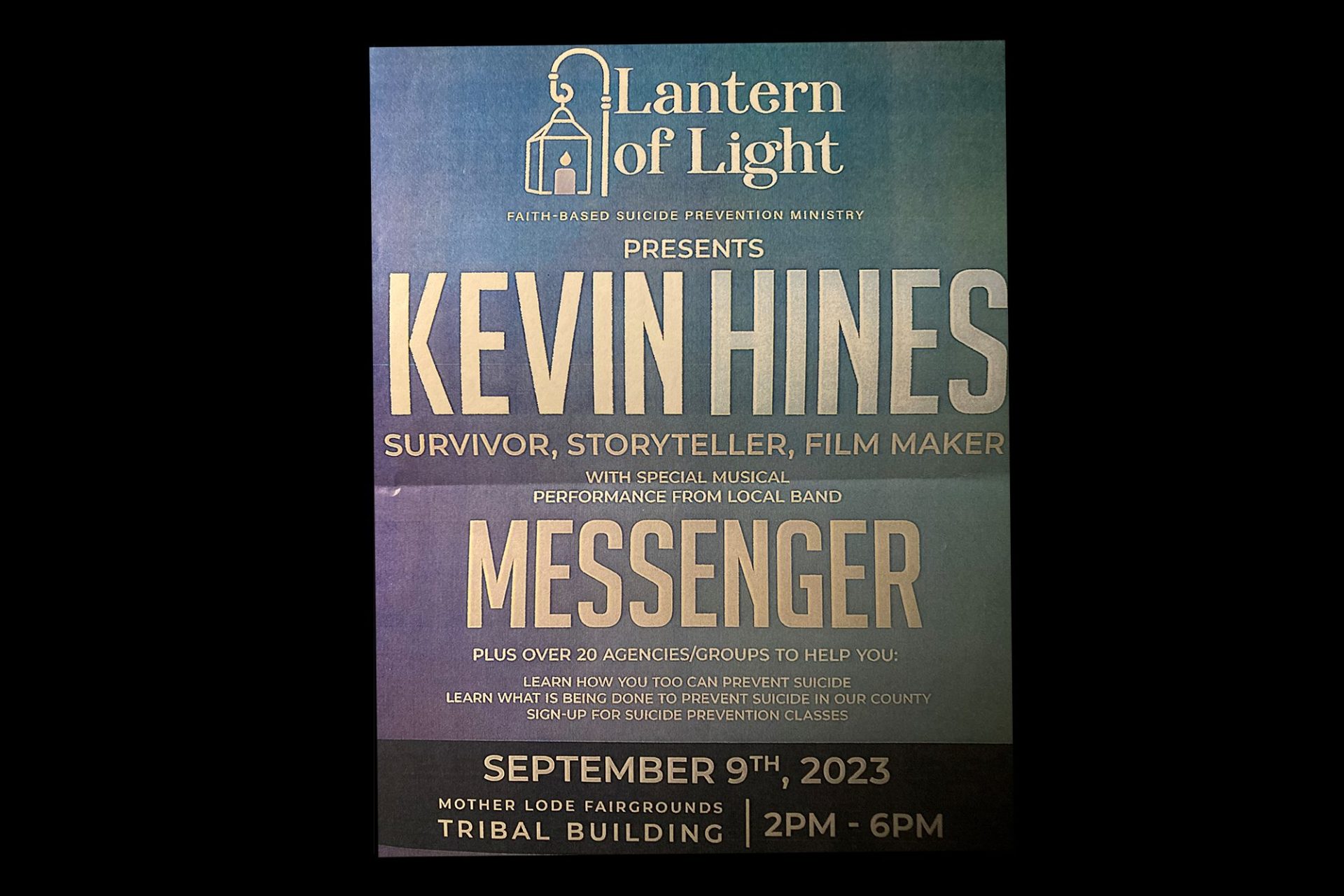 Today, he is an inspirational speaker who teaches others to love the lives they have. He will be at the Mother Lode Fairgrounds this Saturday. The local band Messenger will perform lively Christian music for part of the event. Over 20 agencies will be on hand to share what they are doing to prevent suicide, and how you too can learn to prevent suicide. All are invited to attend this inspirational event.