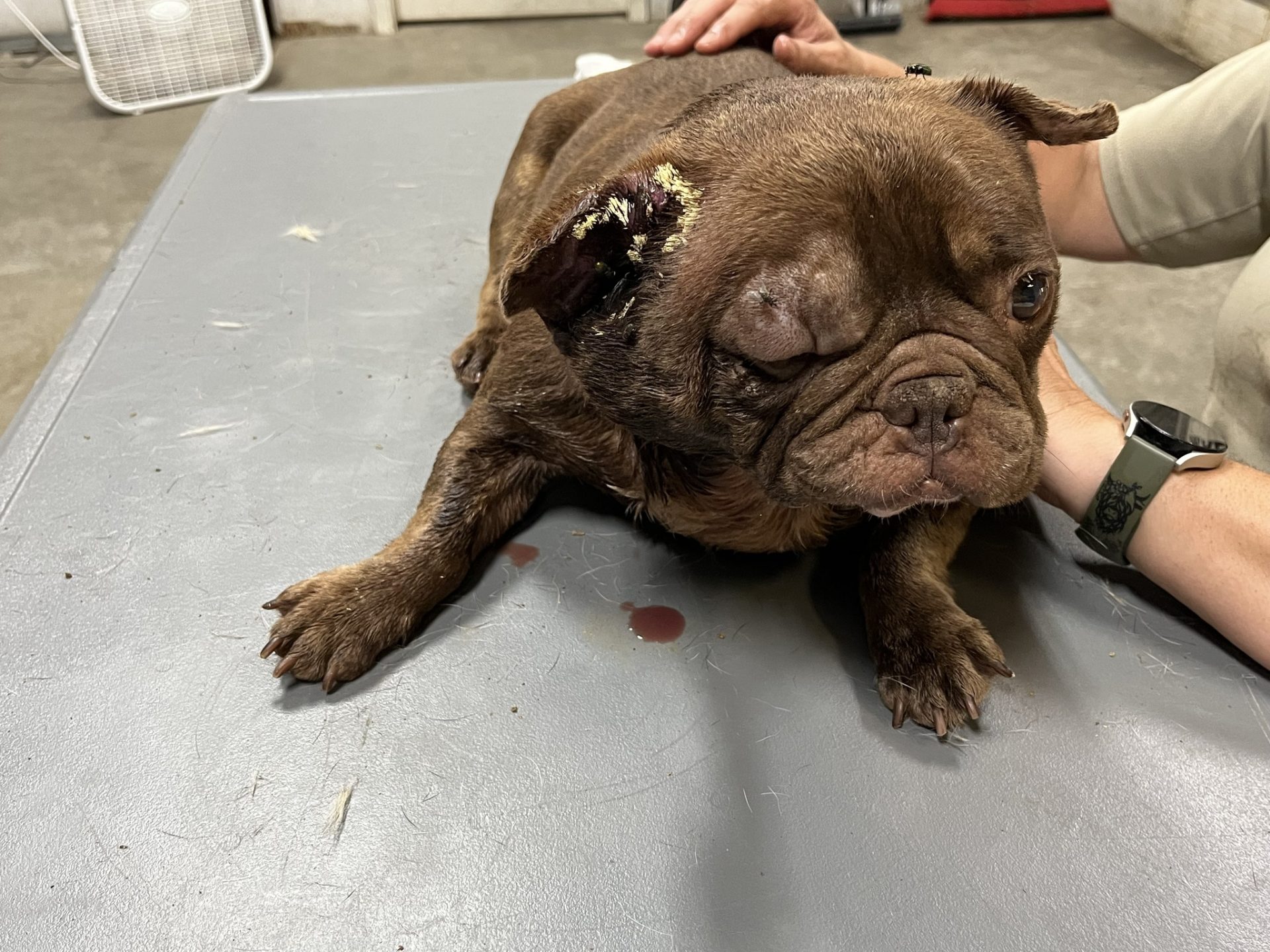 “Their conditions ranged from oozing wounds, eye infections, ear infections (including maggots inside the ear, neck, and throat), visible scabs, to severe mange. One with severe mange was almost hairless, and her entire body was covered in scabs and was raw to the touch,” recounted sheriff’s officials.