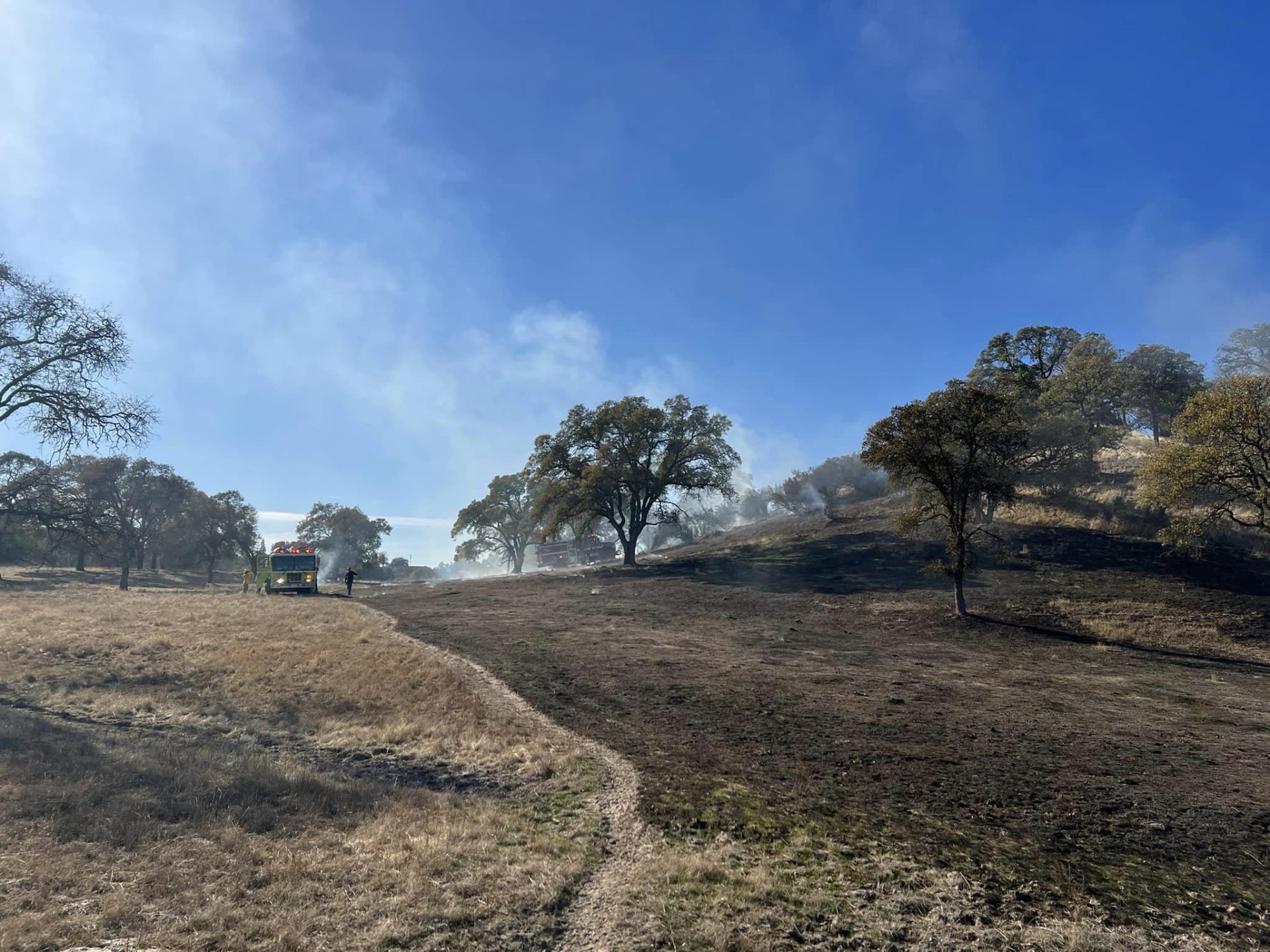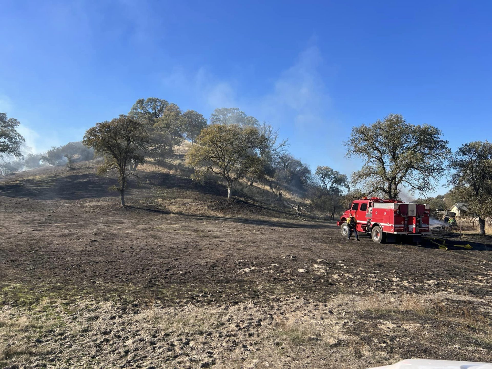 Yesterday’s Campo Fire, detailed here, broke out in brush near the 5340 block of Campo Seco Road, between Camanche Parkway South and Chile Camp Road, just before 11 a.m. and was determined to be an escaped debris burn with a twist. Calaveras Consolidated Fire (CCF) reports that when firefighters arrived, they discovered five separate piles burning in open grass and brush.