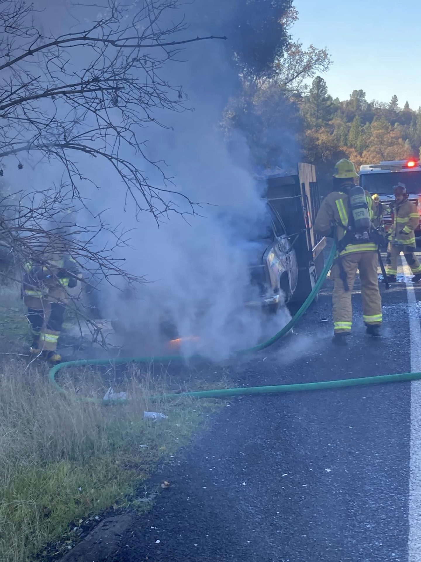 Original post at 12:11 p.m.: Sonora, CA — Firefighters remain on the scene of a vehicle fire, temporarily closing a section of Tuolumne Road.