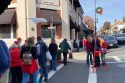 The event at Linoberg Street in Sonora is managed by the Tuolumne County Sportsman. No official count of people who came to enjoy the beans takes place, but hundreds were lined up on the sidewalk back Coffill Park at noontime. Many locals, dressed for the holidays, chat with neighbors as they wait in line. Sonora Police Chief Turu VanderWiel is seen in the photo ringing a bell for Salvation Army donations.