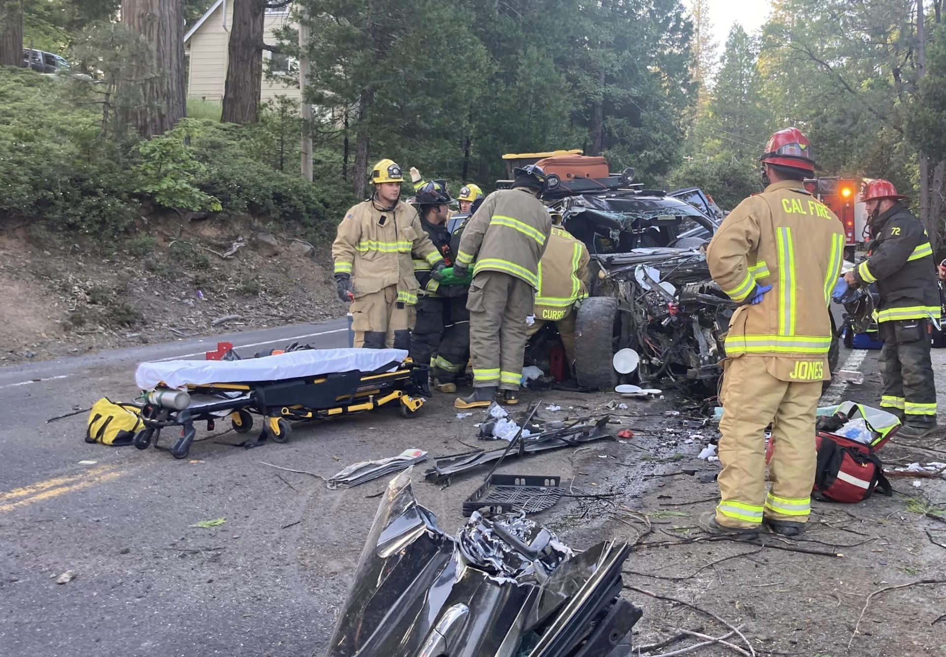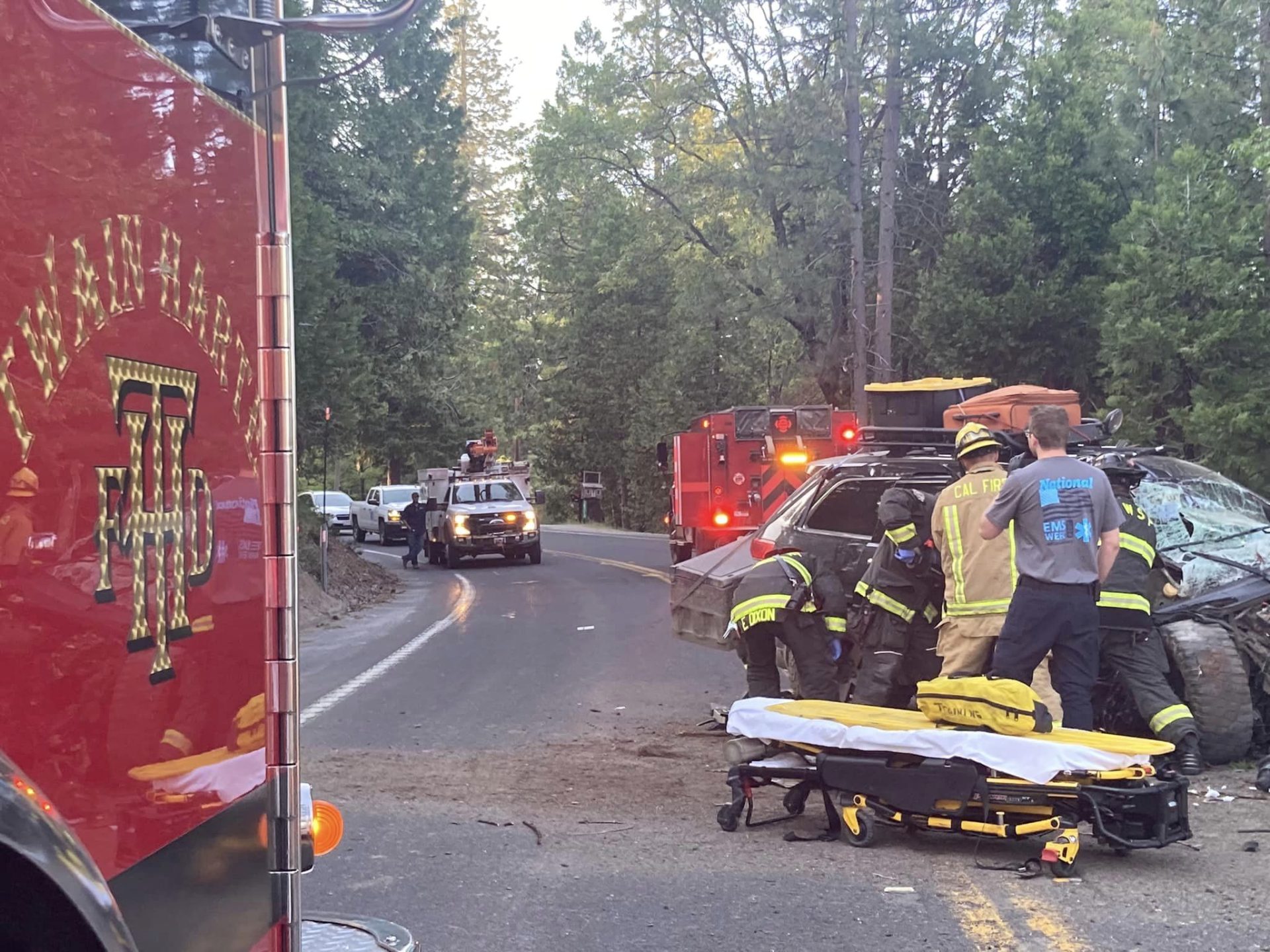 As one of the image box pictures shows, the Jaws of Life was used by firefighters to free one of them from the heavily damaged vehicle, but it is unclear who. CAL Fire officials noted that “cooperative training hosted by Twain Harte Fire recently proved beneficial in the use of multiple sets of extrication tools to remove a patient from the heavily damaged vehicle.”