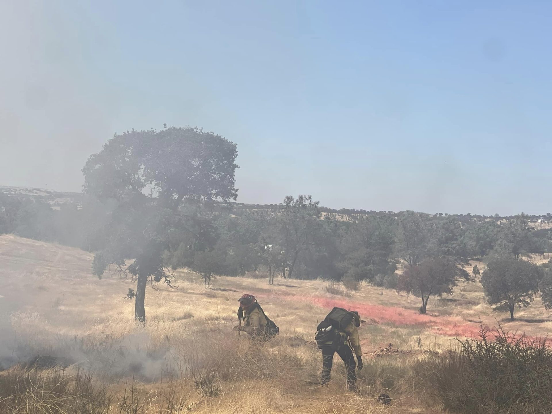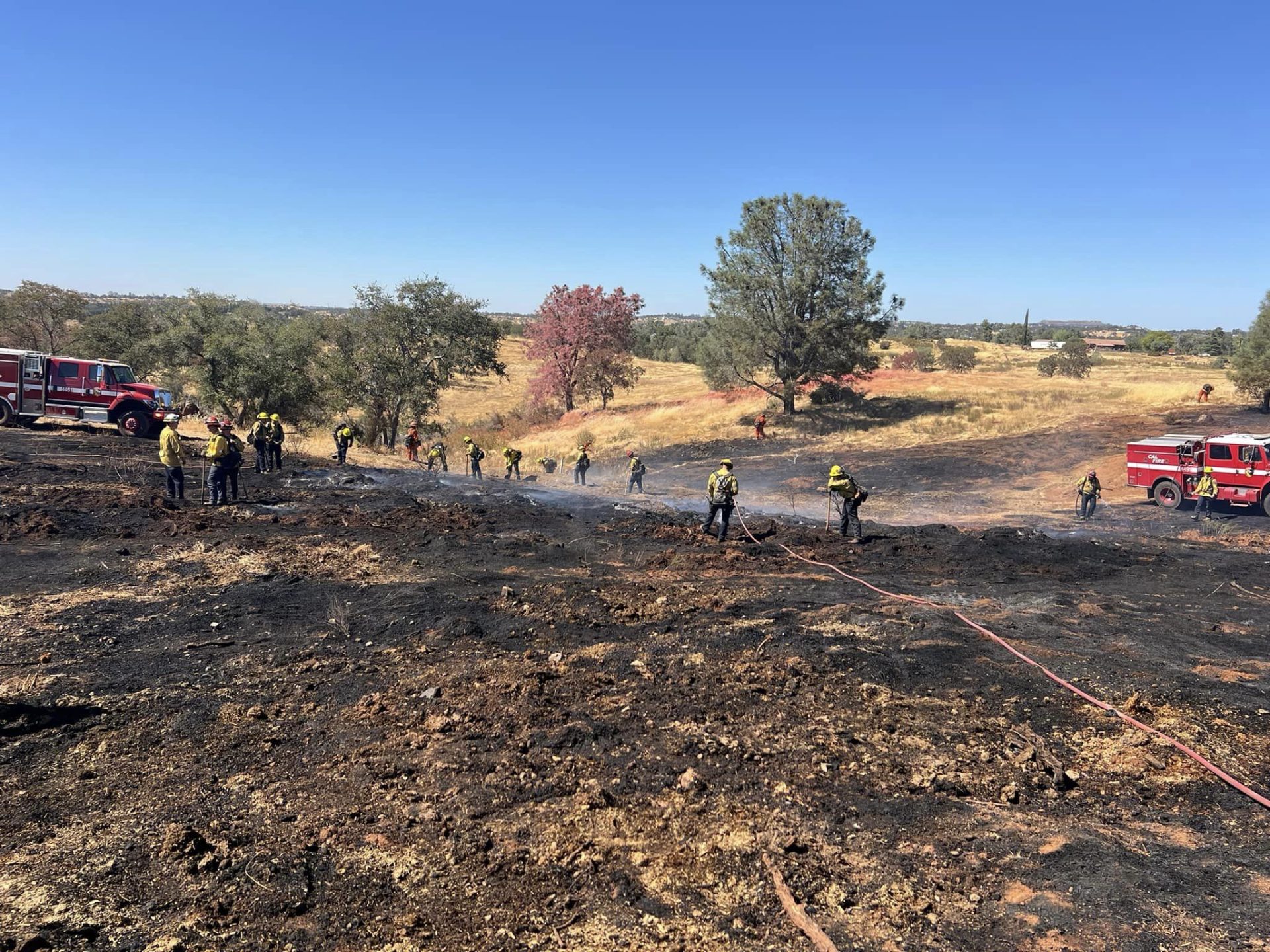 Update at 2:48 p.m.: Air and ground resources are battling the McAtee Fire burning in the 8200 block of McAtee Street near O’Rielly Street and south of Highway 26. CAL Fire reports that the blaze is a quarter acre in size and moving at a slow rate of spread. While there are several homes nearby, no threat to structures has been issued, as crews are making progress on the blaze.