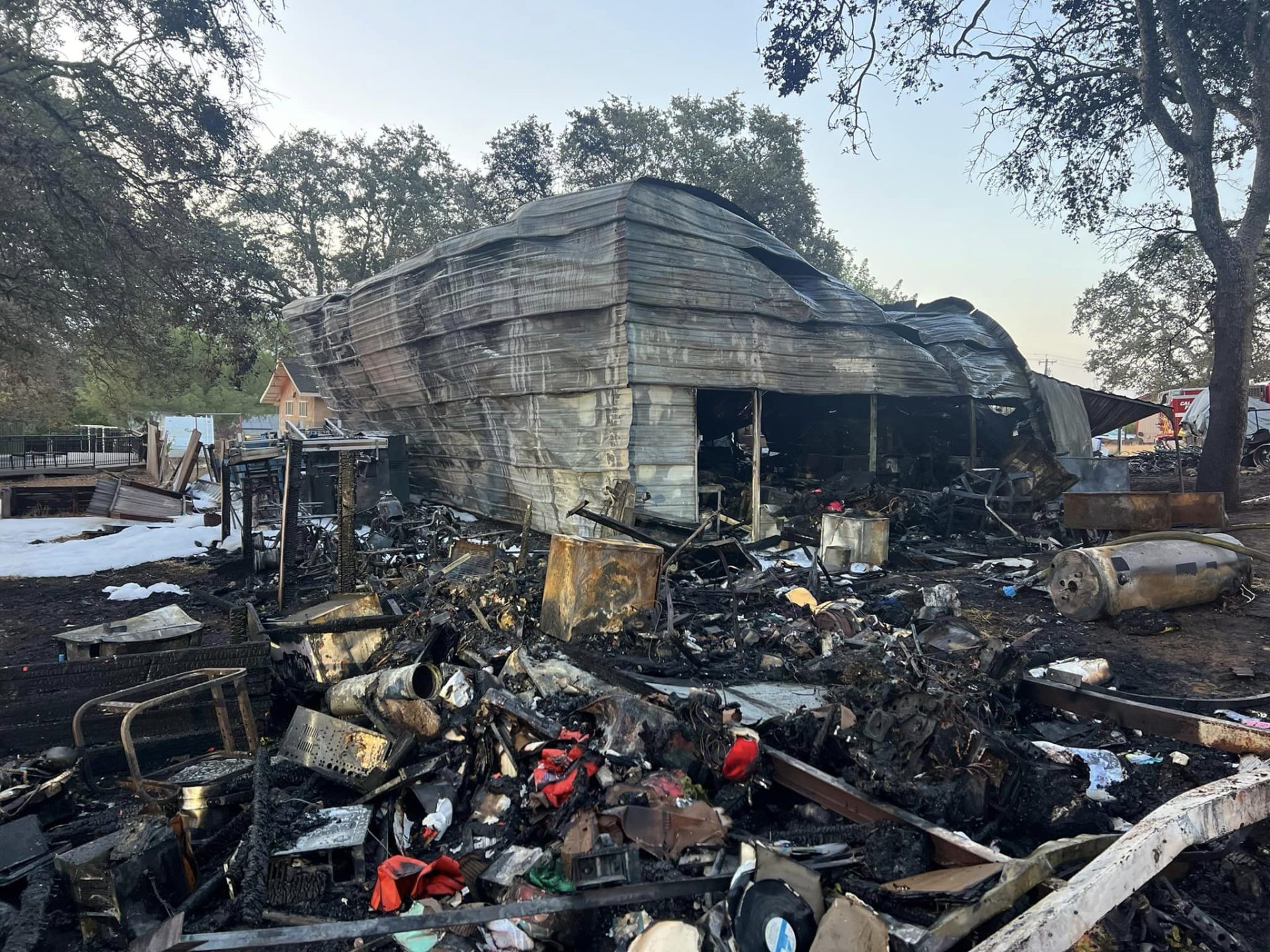 Valley Springs, CA – An early morning blaze in the Valley Springs area of Calaveras County destroyed a workshop.