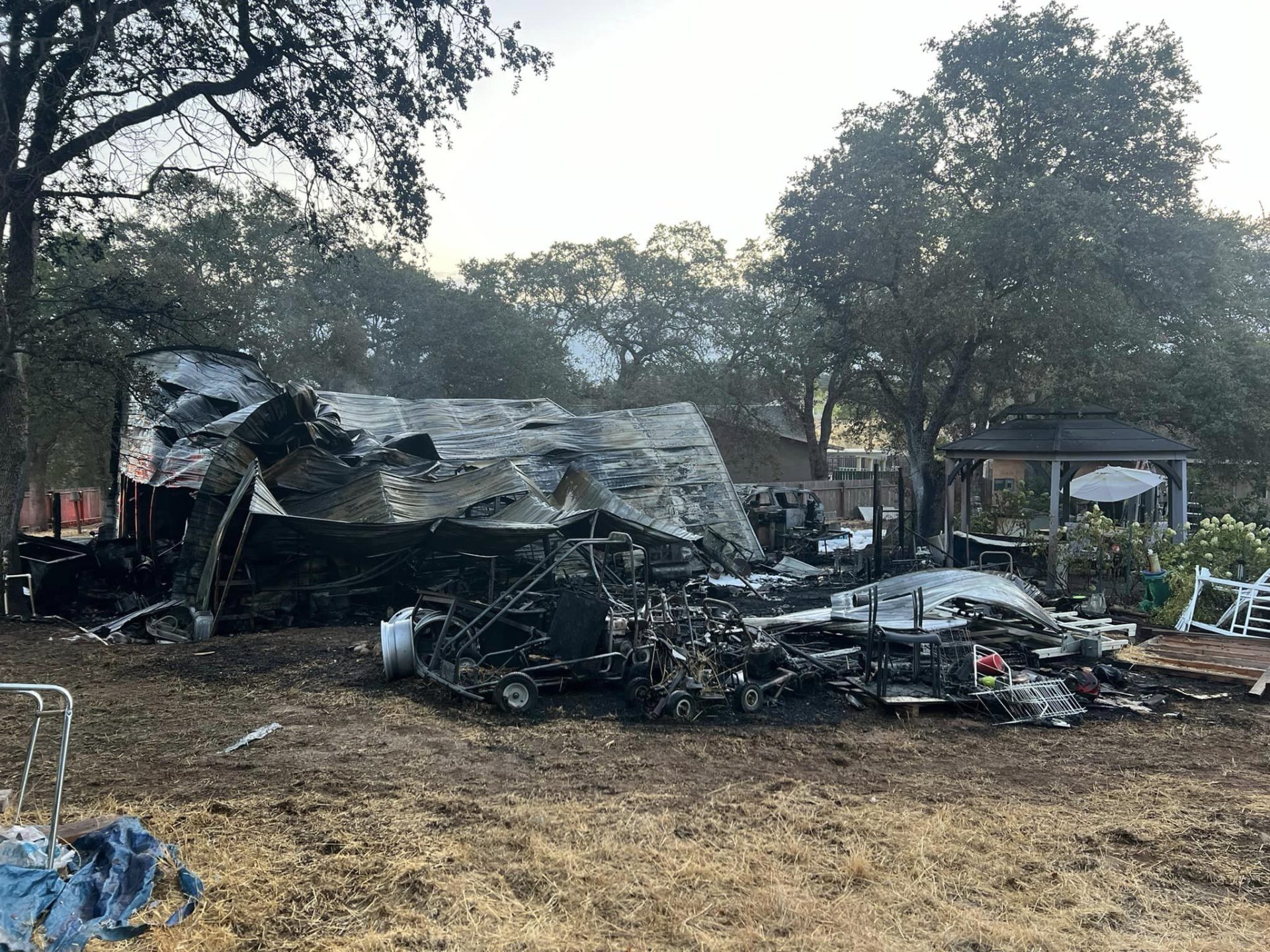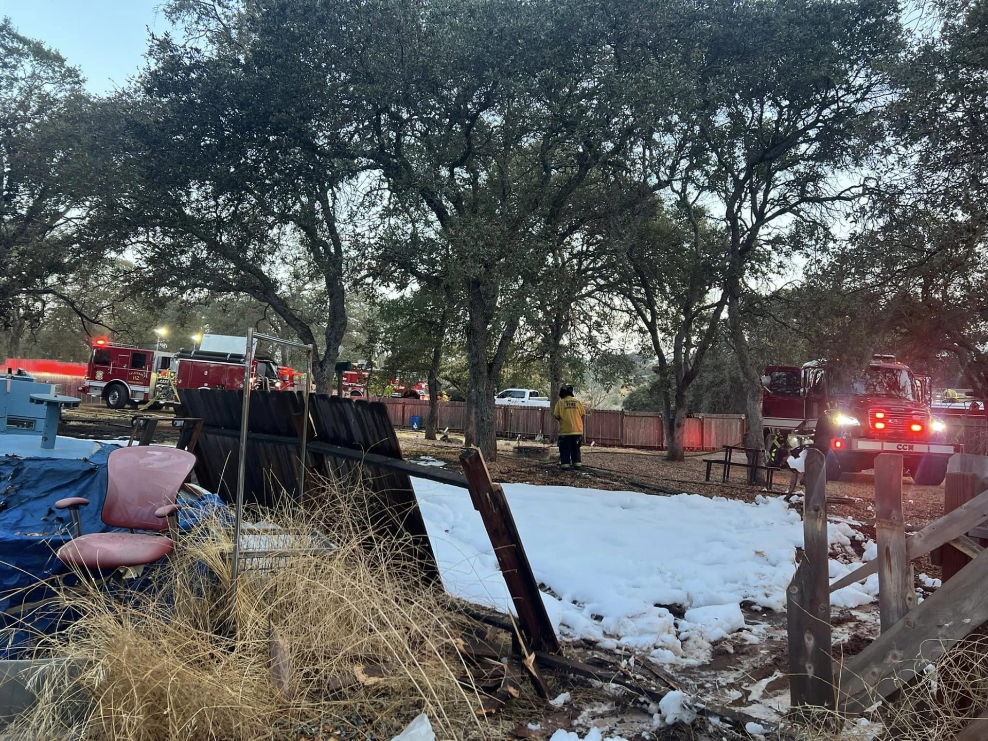 When firefighters arrived on the scene along Baldwin Street in the Rancho Calaveras subdivision around 3:30 a.m., flames were shooting out of the large shop behind a home. They report that there were multiple trailers and a car involved in the fire that could have spread the flames to nearby vegetation, but crews were able to contain the fire while preventing its spread to the residence.
