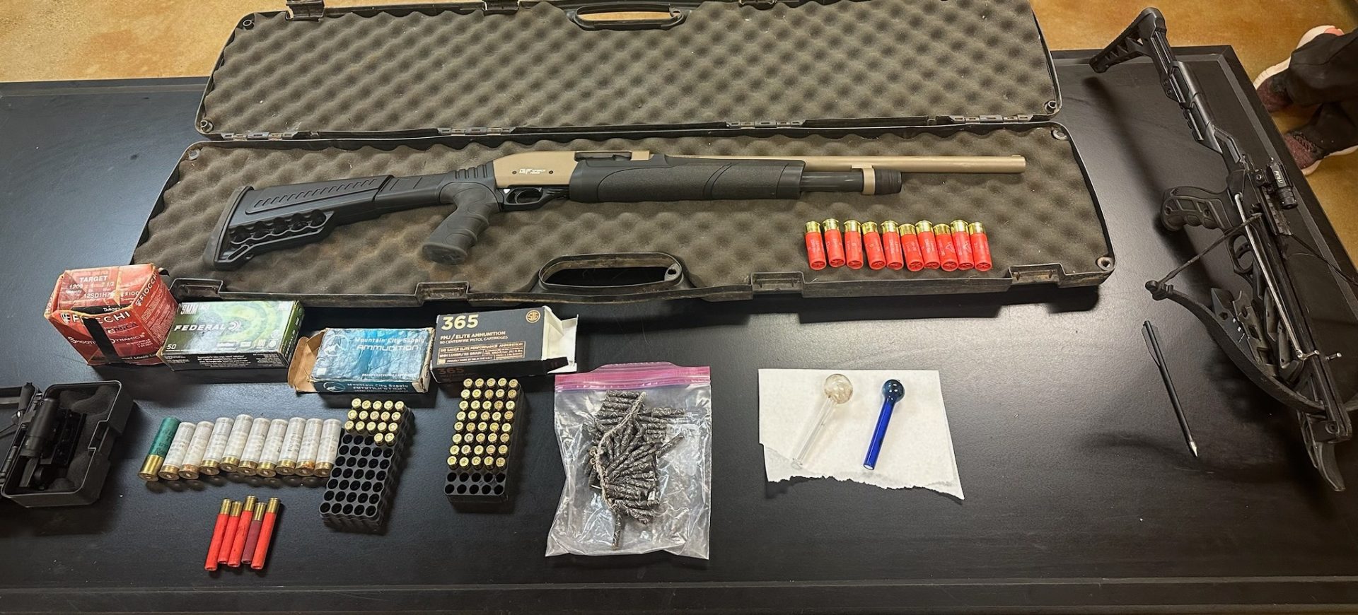 Grant Aaron Norman, 33, was taken into custody at approximately 3:20 p.m. when Calaveras County Probation Officers and Deputy Sheriffs conducted a routine check at a home in the 200 block of Centennial Mine Road. The visit was part of an effort to ensure Norman was adhering to his probation conditions. During the check, officers discovered a 12-gauge shotgun, a crossbow with an arrow, and approximately 84 rounds of live ammunition in Norman’s possession. All items violated the terms of his probation.