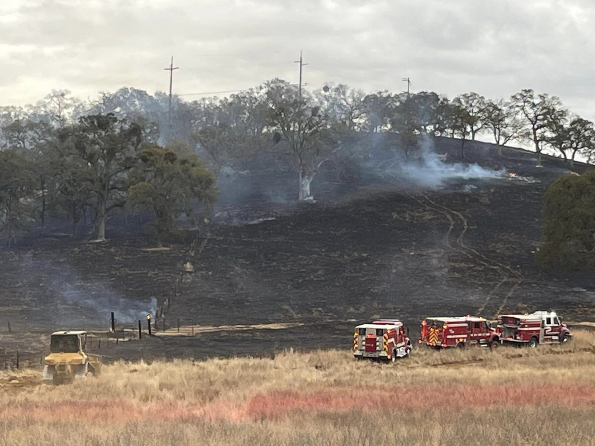 Update at 5:35 p.m.: CAL Fire spokesperson Emily Kilgore updates that mapping of the Brauns Fire shows its size is 47.4 acres after its forward spread was stopped in about an hour. Crews have gained 25 percent containment as they continue to work towards full containment. What sparked the blaze is under investigation.