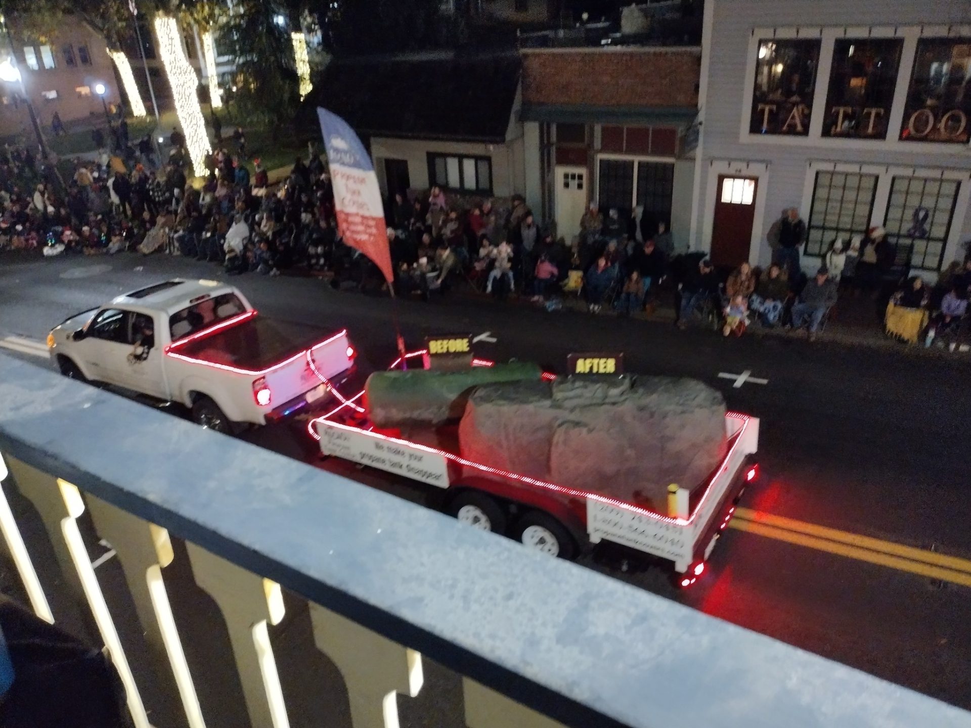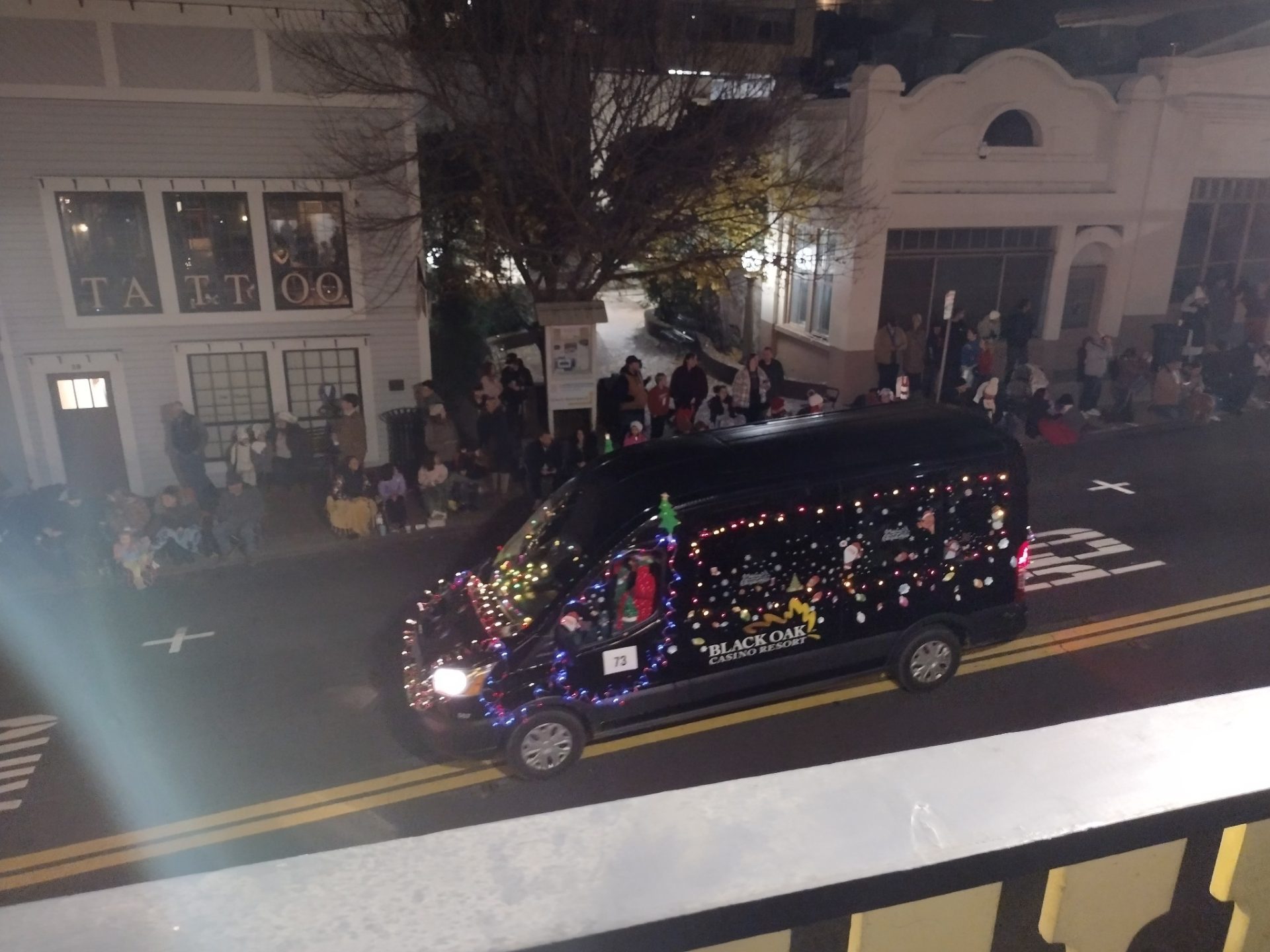 The parade is put on each year by the City of Sonora as a way to draw visitors downtown on the day after Thanksgiving. It is the kickoff to the Christmas season. There were over 80 entries this year, ranging from local businesses to non-profits, churches, first responders, and law enforcement officers. Marching down the street were plenty of bands, colorful floats, classic cars, and, of course, Mr. and Mrs. Claus wishing all a Merry Christmas and a Happy New Year! Click on the photos to see many of the entrants in the image box and click here for a video of some of the fun!
