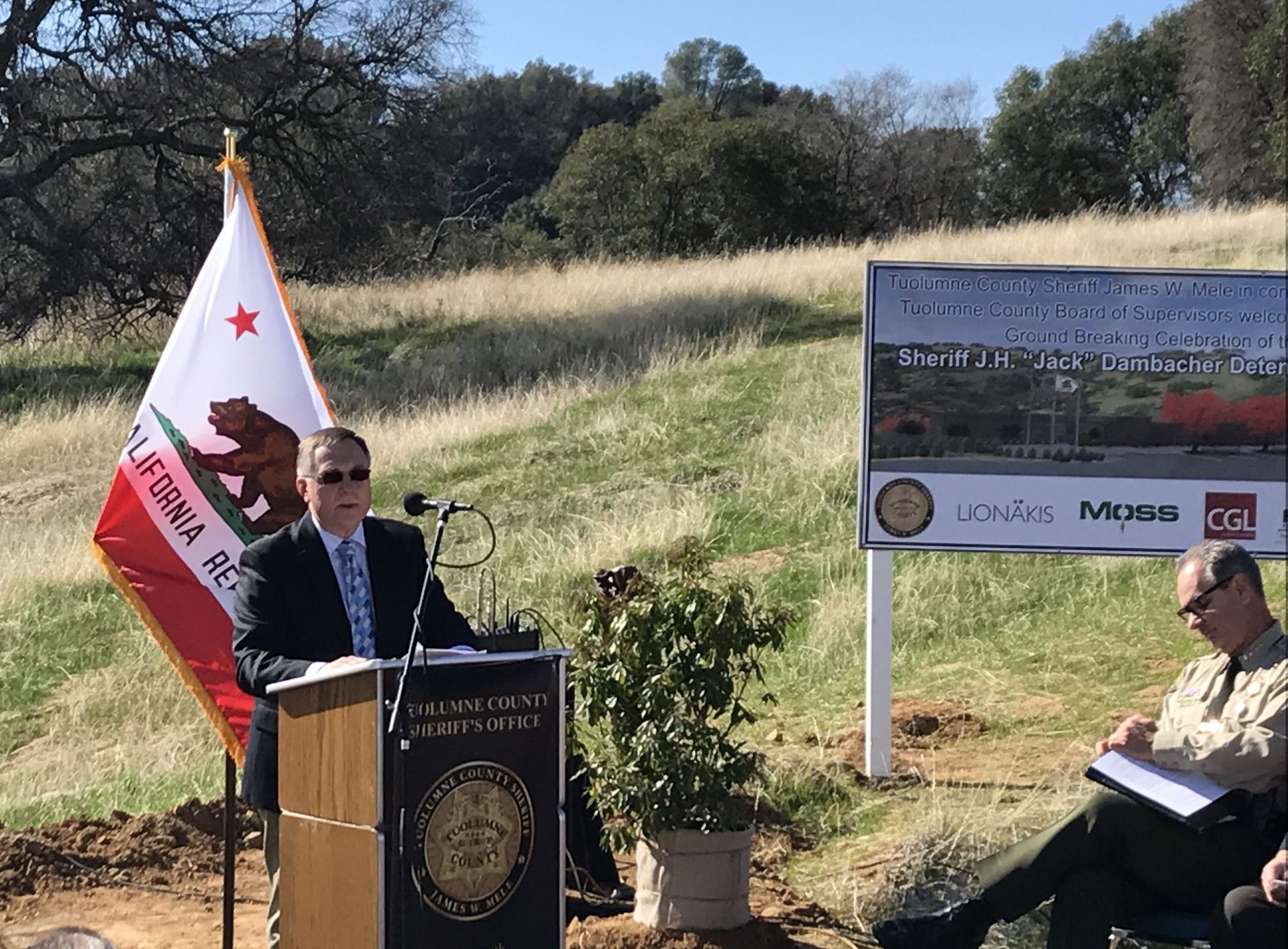 Tuolumne County Sheriff Jim Mele was the master of ceremonies at the groundbreaking ceremony, and he noted that the project has been in the works for over 20 years. Other speakers included board of supervisors chairman John Gray, chairwoman of California’s Board of State Community Corrections Linda Penner, and Gary Dambacher, one of the grandchildren of the facility’s namesake, Sheriff J.H. (Jack) Dambacher.