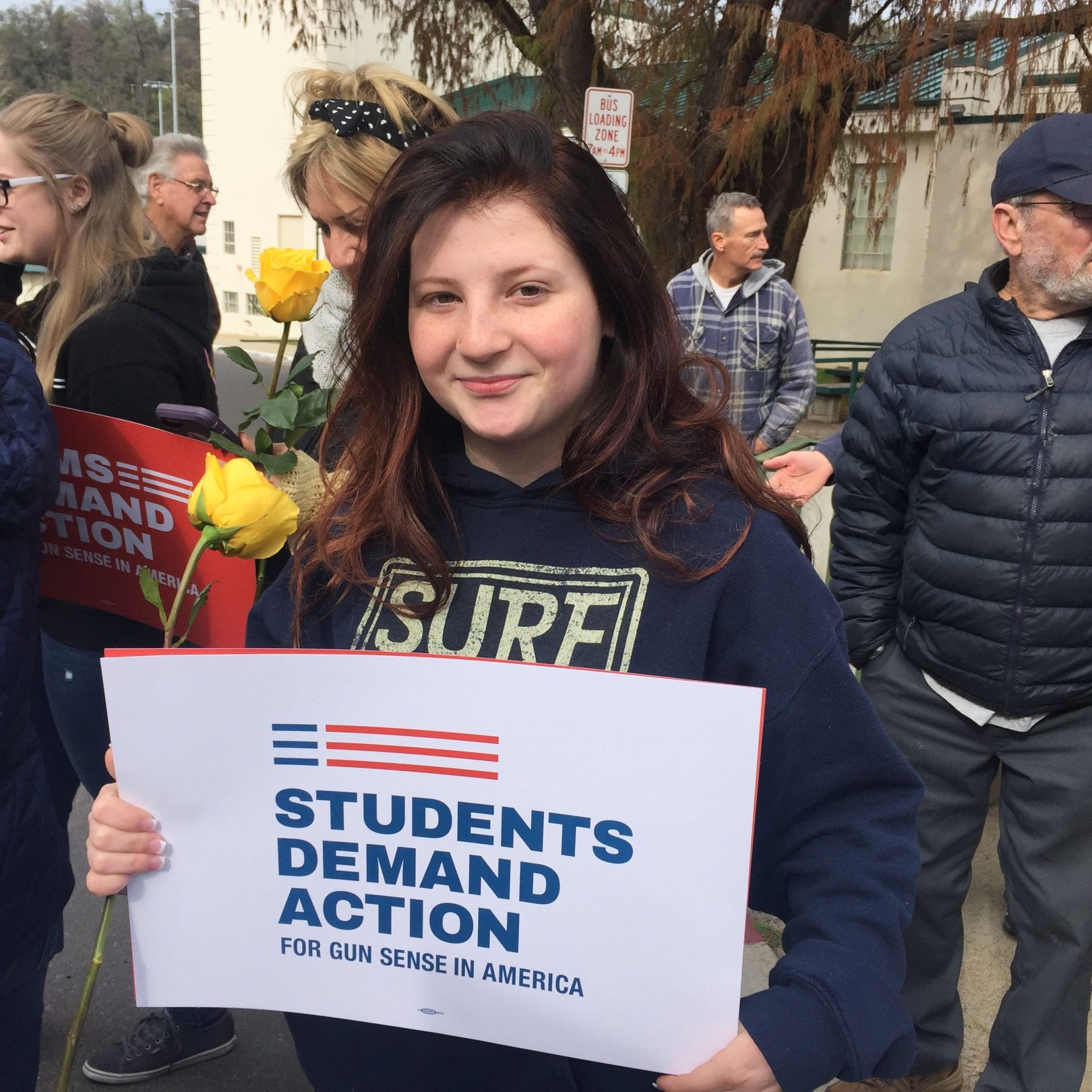 With anti-gun violence signs reading “No more dead kids” and another declaring “Students Demand Action,” among others, the first steps began at Sonora High School and wound towards downtown along Washington Street this morning. (Click here for video) Protestors also carried flowers for those lost in school shootings, including the 17 students killed in Parkland, Florida last month. Sonora High Sophomore Nevaeh Pletcher detailed why she took to the streets, “Because I believe that everyone should have a voice and we shouldn’t be put aside. I feel like guns shouldn’t be in schools. They should be controlled and no one should have a military grade gun.” (Click here for video)