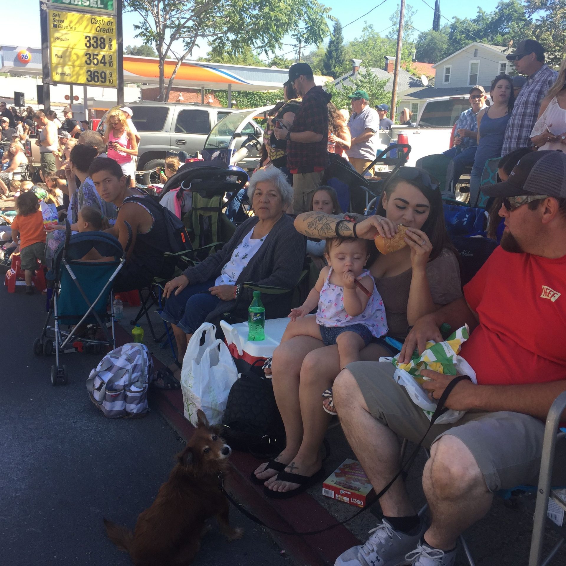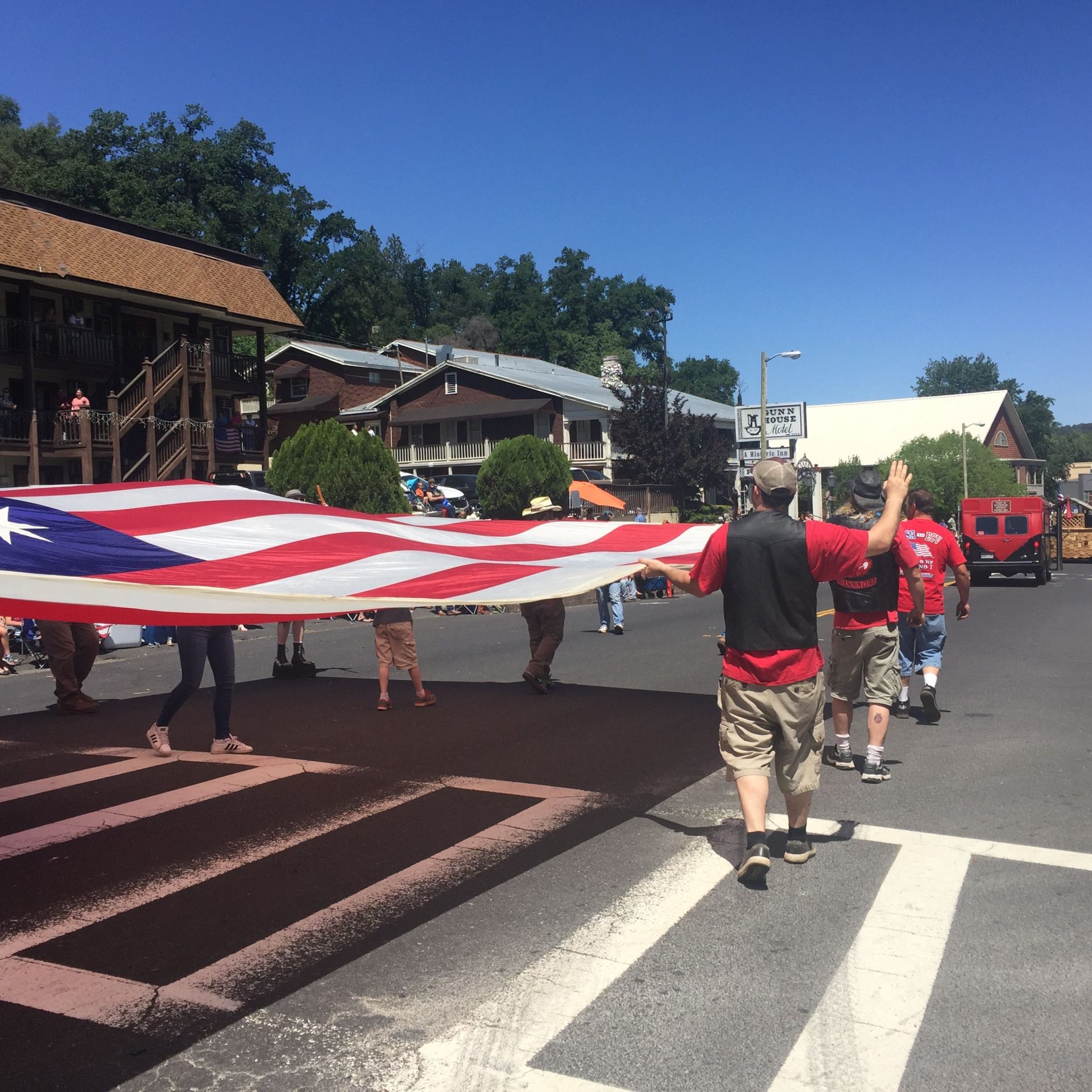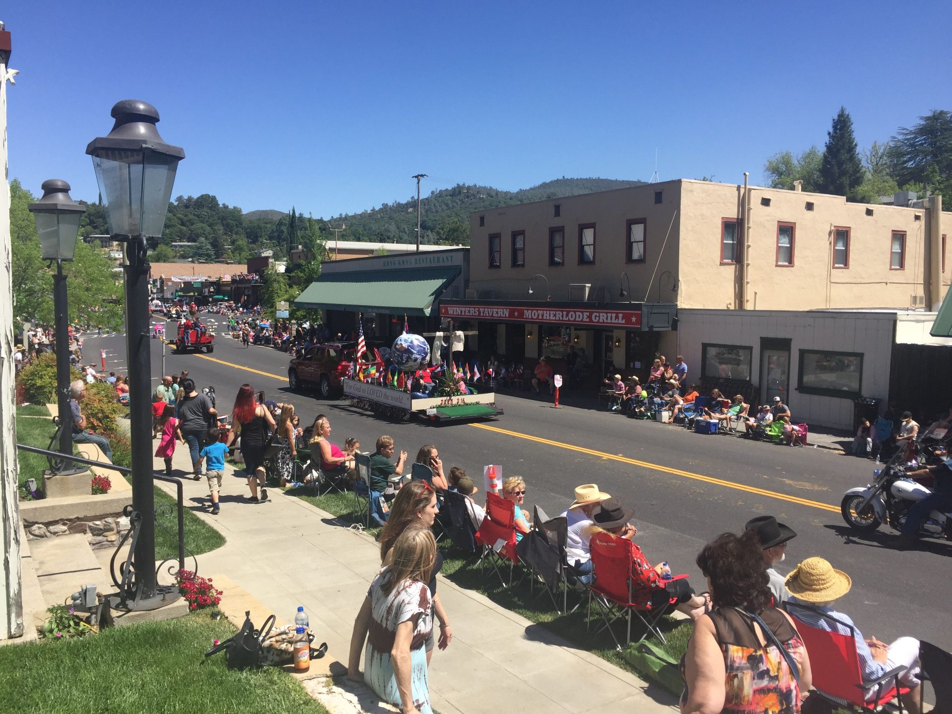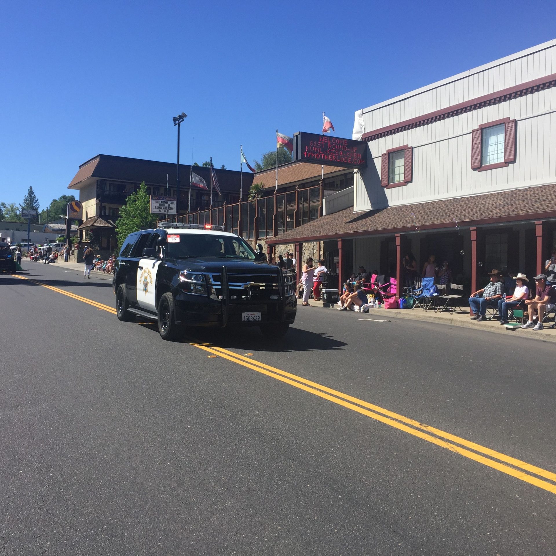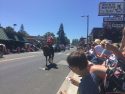 The warm temperatures brought out thousands to line Washington Street in downtown Sonora.  The crowds cheered as an Uncle Sam blow up character sailed past, tapped their toes as bands marched by and clapped for trotting horses with Tuolumne County Sheriff’s Posse members and rodeo queens in the saddles. There were also dancers, classic cars and hogs, fire trucks, police patrol cars and a slate of political candidate all vying for June primary election votes. However, what brought the revelers to their feet was the sound of the National Anthem and a huge red, white and blue flag at the end of the parade.