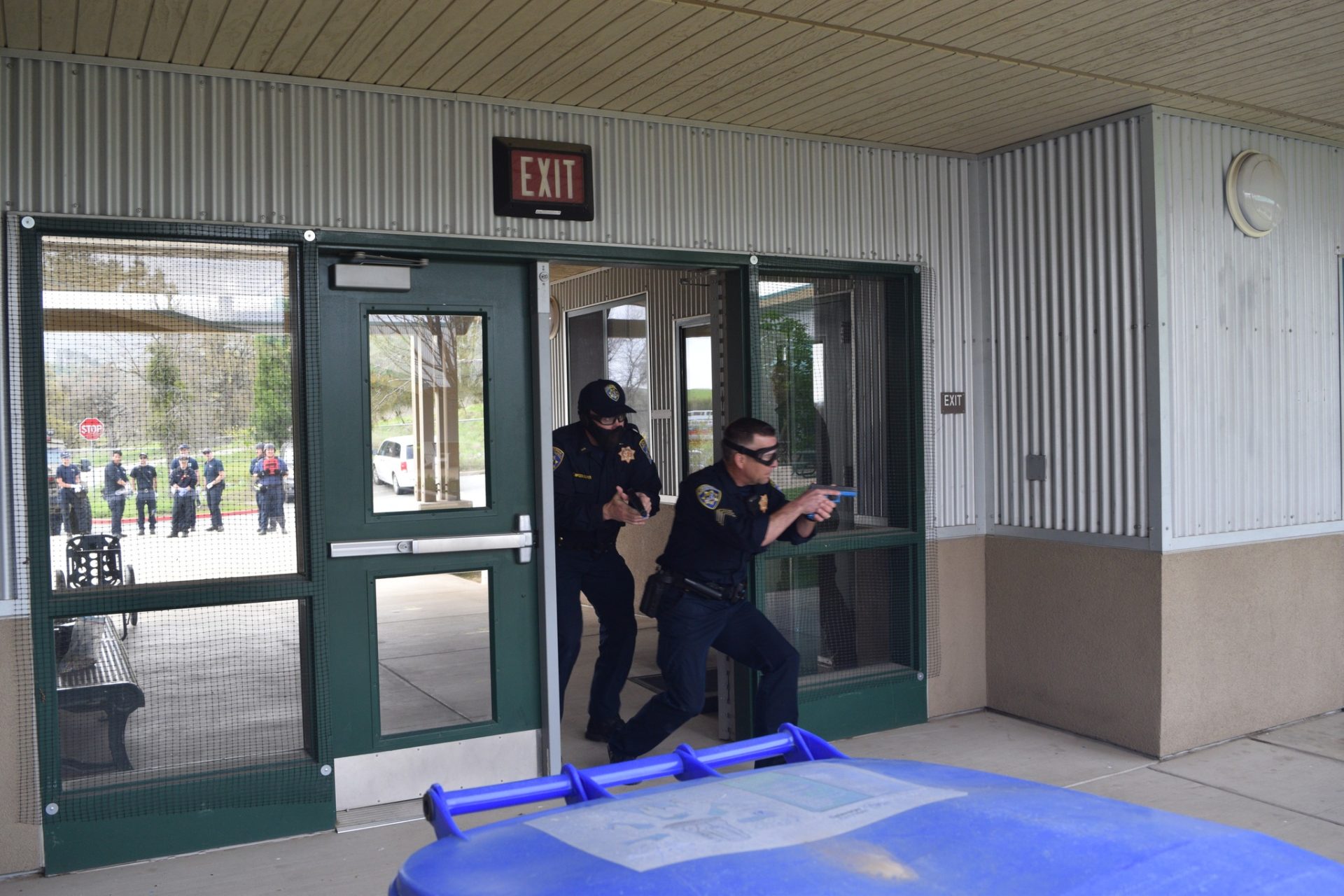 The Mountain Oaks School was recently flooded with first responders carrying out the annual multi-agency scenario-based training. With guns drawn, as seen in the image photos, Calaveras County Sheriff’s deputies canvassed the school, going from room to room looking for the suspect.
