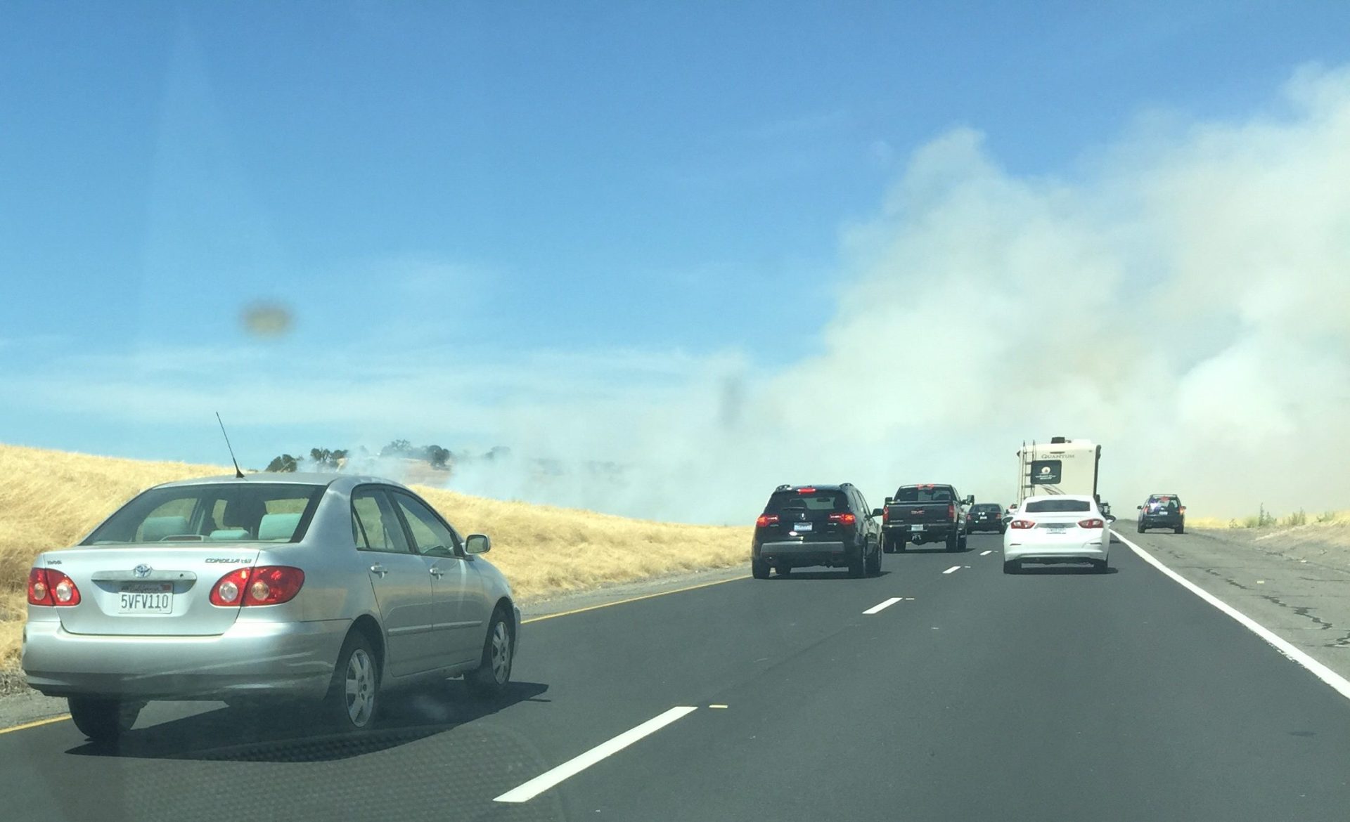 Update at 3:30 p.m.: A vegetation fire in Tuolumne County on Highway 108 has been contained at seven acres, according to CAL Fire spokesperson Lindy Shoff.  It was burning in grass west of Tulloch Road and east of Knights Ferry. All Columbia aircraft are returning to base. No structures were threatened. What sparked the blaze  is under investigation. Shoff details that crews will remain on scene mopping up and checking for hotspots for the next hour.