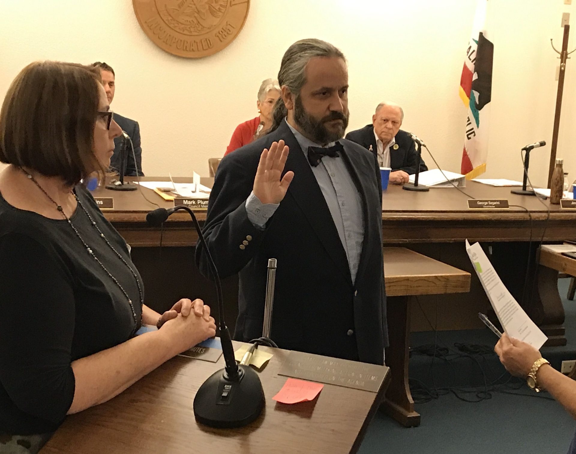 Mayors serve a two year period in Sonora, so Garaventa will remain in the position through July of 2020. Immediately after, he appointed Matt Hawkins as Vice Mayor. At tonight’s meeting at city hall, Garaventa and Colette Such also were given the ceremonial oath of office, as they were the top vote-getters in the June primary election. Click on the video box for Such’s swearing in.