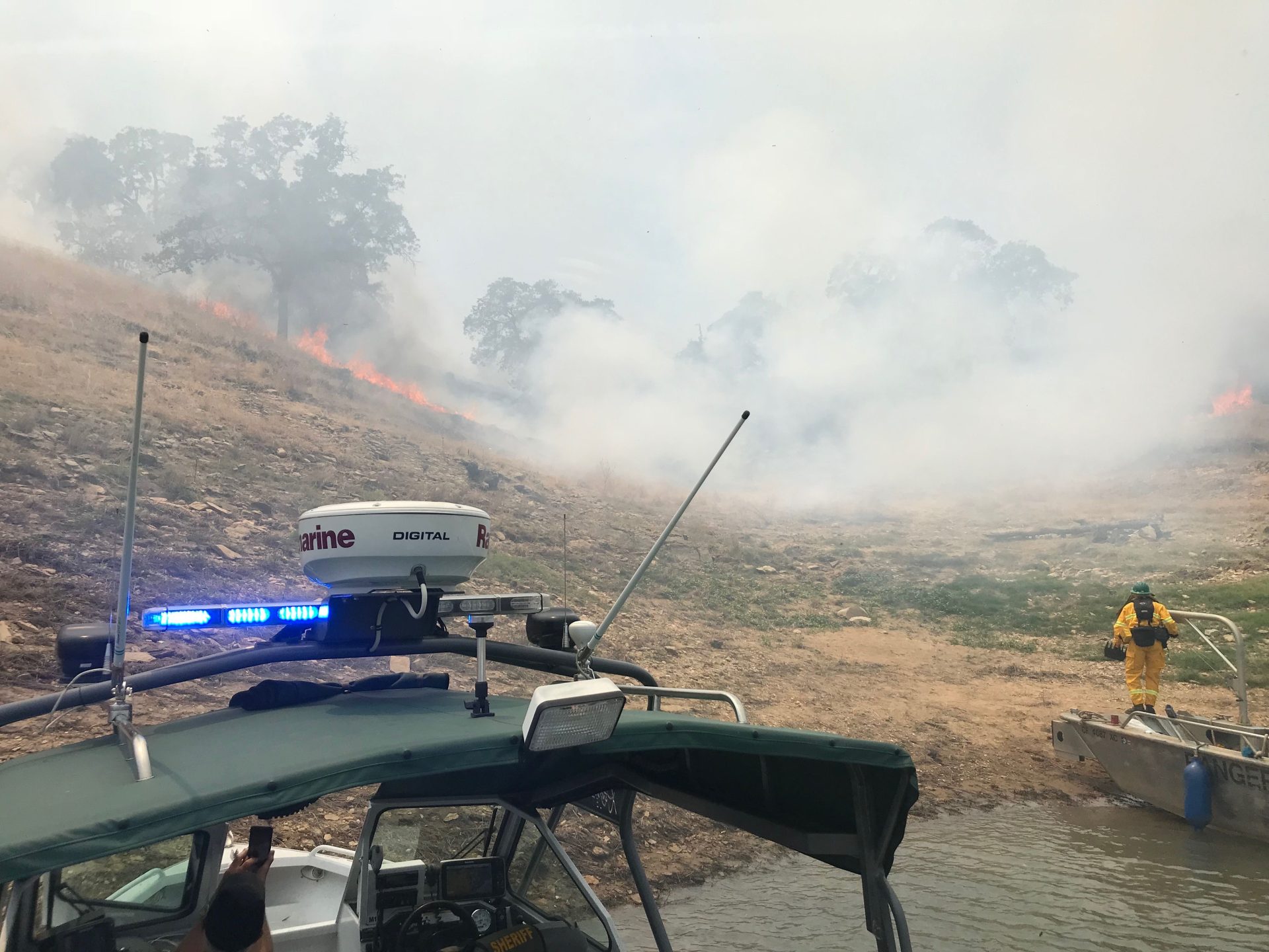 Original story at 2:25pm: Tuolumne County, CA — A three acre fire ignited shortly after 1:30pm at the Blue Oaks Campground in the Lake Don Pedro area.
