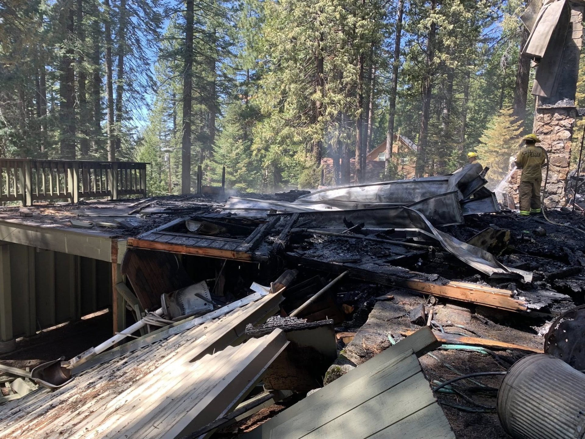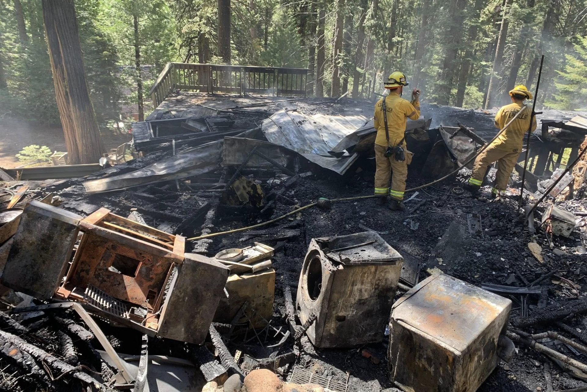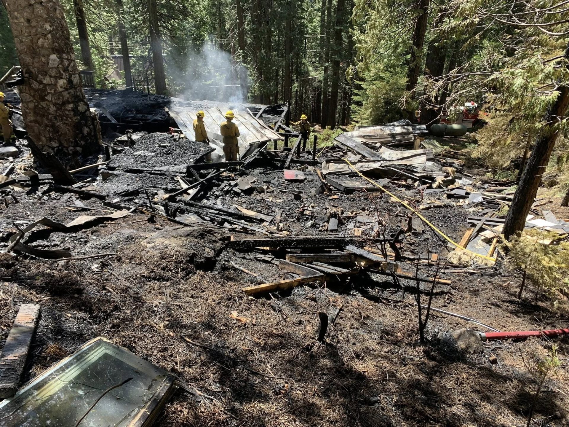 The Tuolumne County Fire Department (TCFD) pictures in the image box show the destruction after firefighters, including those from CAL FIRE TCU and Twain Harte Fire, contained the fire in a home in the 28000 block of Hilltop Lane in Strawberry north of Highway 108 on Sunday (4/20) around 8:47 a.m.