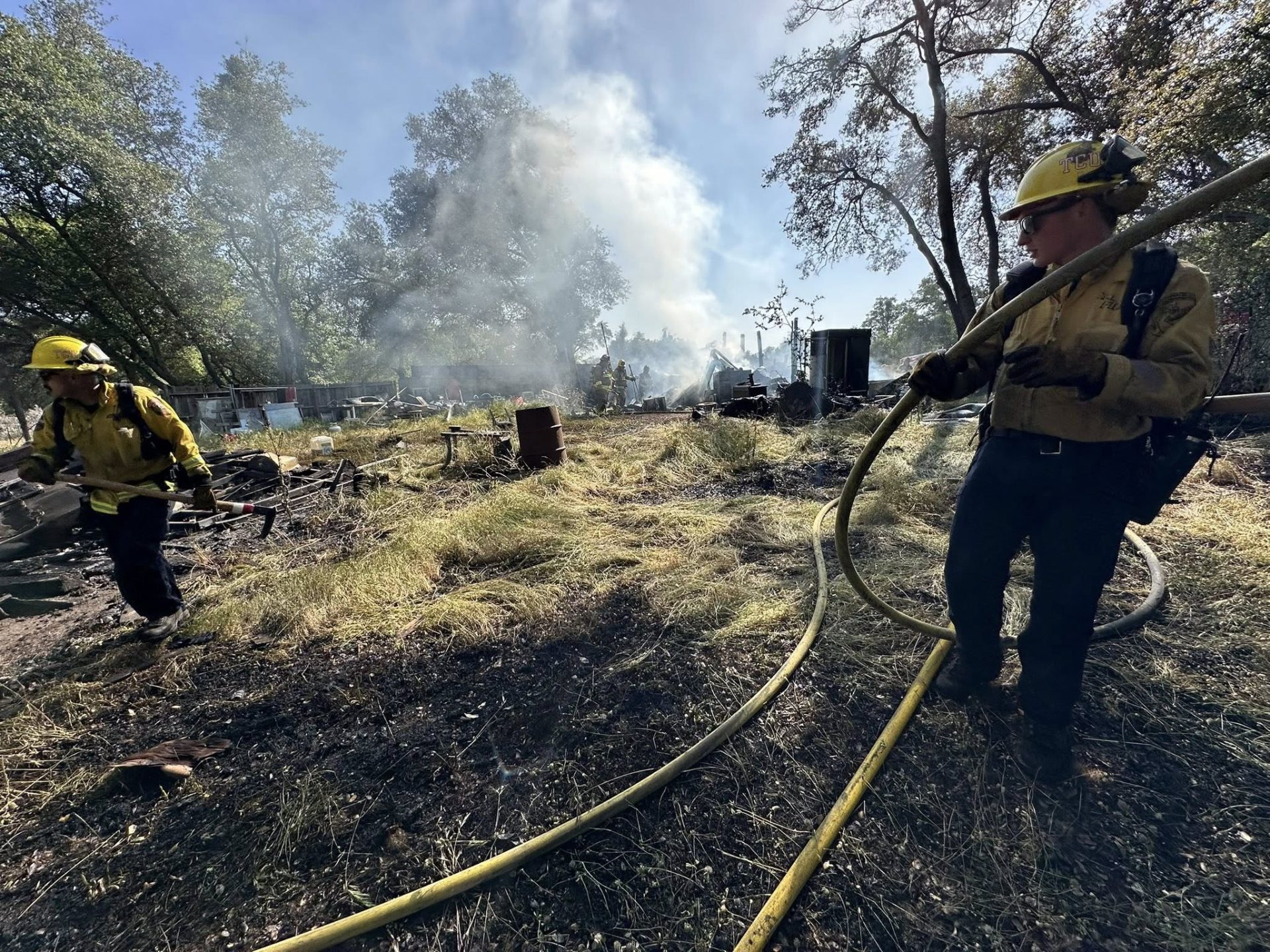 Update at 4:30 p.m.: The blaze has been dubbed the Brandy Fire after a barn fire spread to a quarter acre of grass nearby at 12034 Brandy Lane near Pattison and Camanche roads, off the shores of Camanche Reservoir. Further details on the blaze can be viewed below.