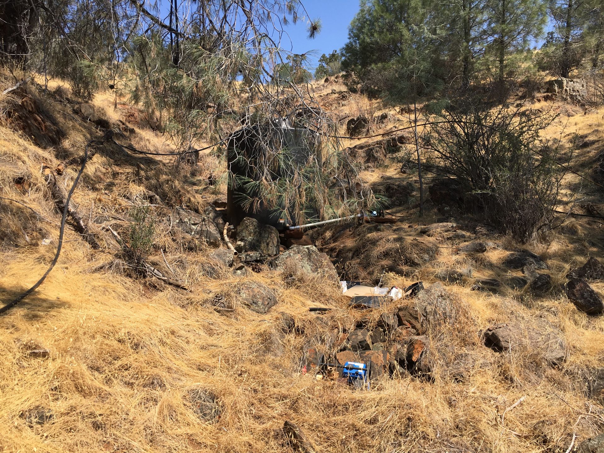 Copperopolis, CA – A discouraging scene at a rural area Calaveras County property where pot plants and dangerous chemicals are found at the illegal grow site.