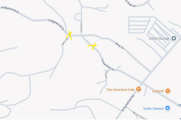 Finally, Tuolumne Utilities District (TUD) construction crews will be installing a new water service on Ridgewood Drive, between 8 a.m. and 3 p.m. in the Phoenix Lake area. Flaggers will direct one-way traffic between Amy Drive and Crestview Drive. Motorists are advised to use alternate routes if possible. (Map shown in image box photos)