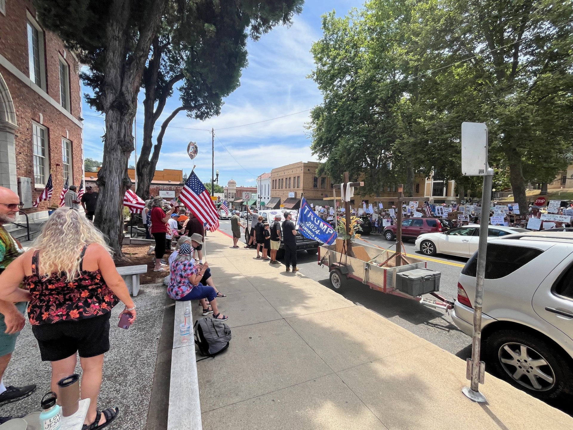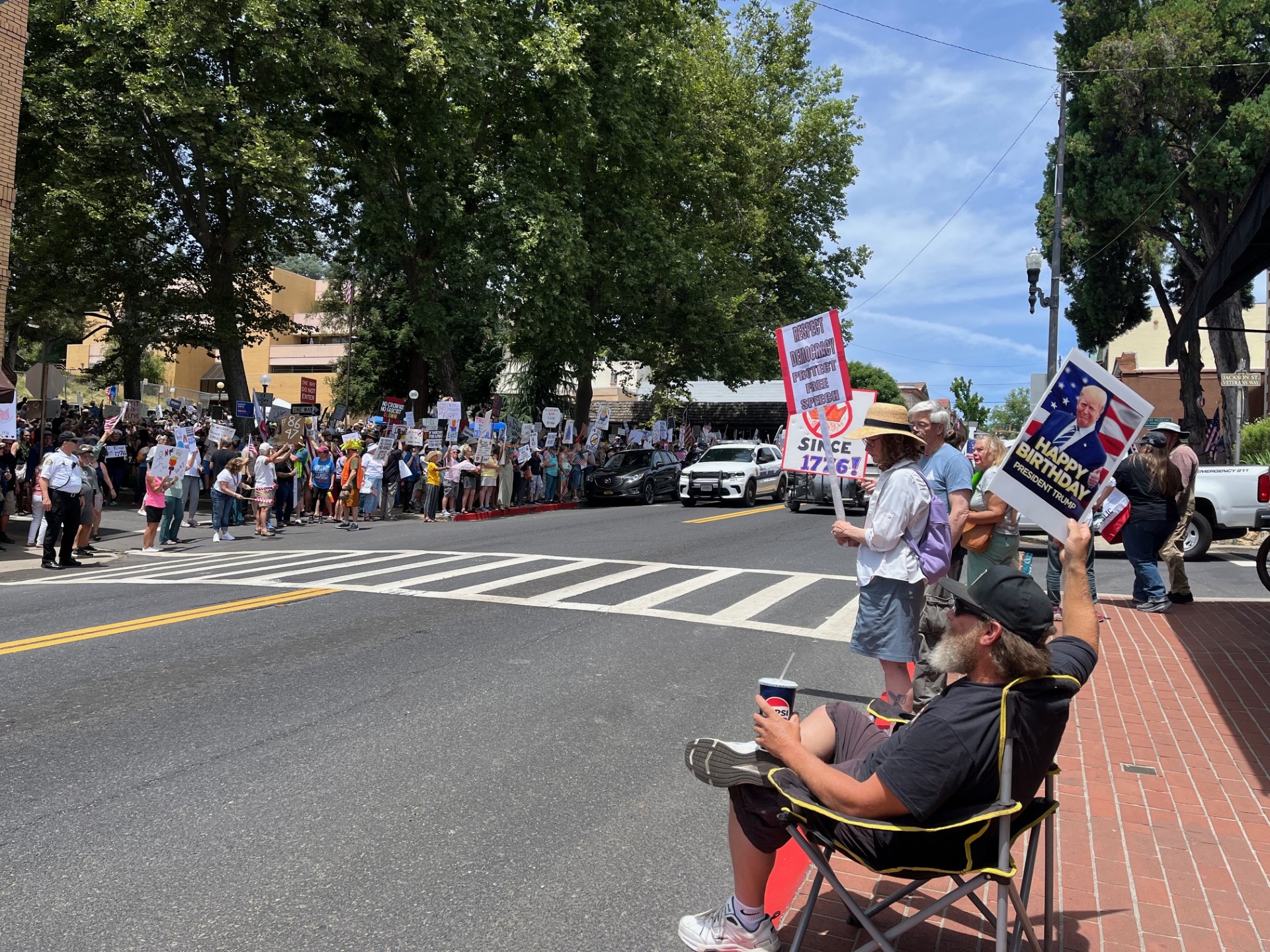 Sonora, CA— The “No Kings Rally” in downtown Sonora today brought out protestors on both sides, a majority were there against President Trump.