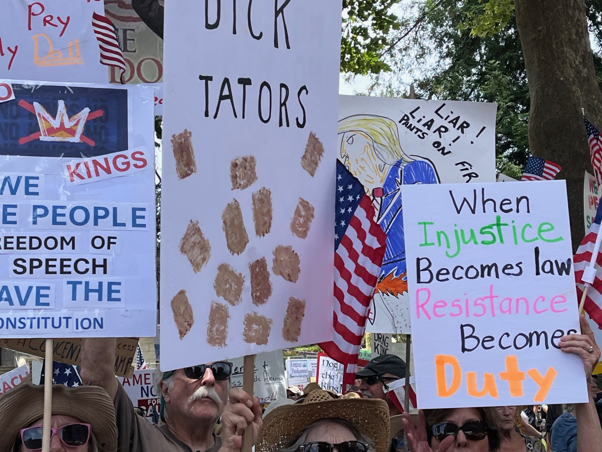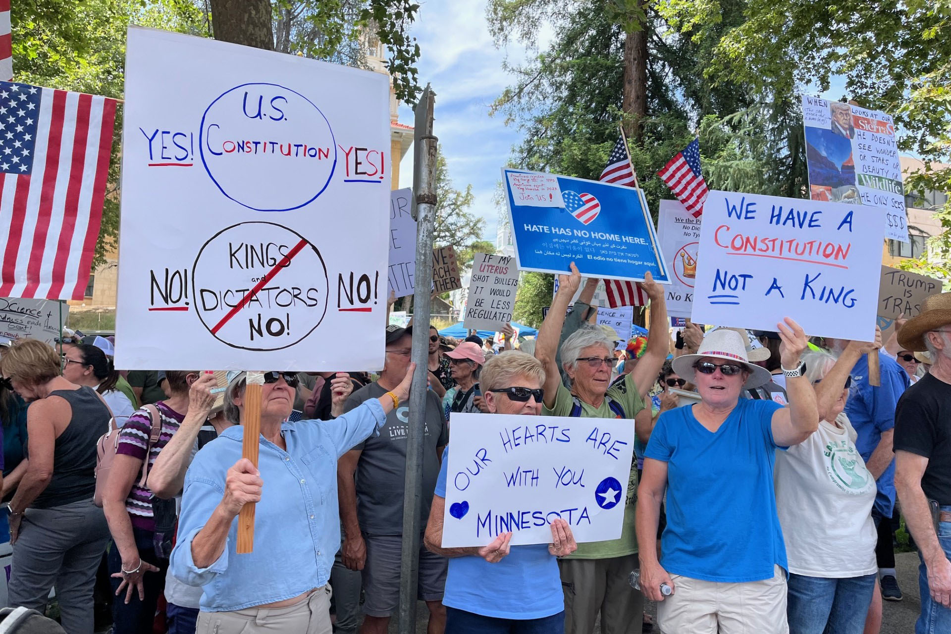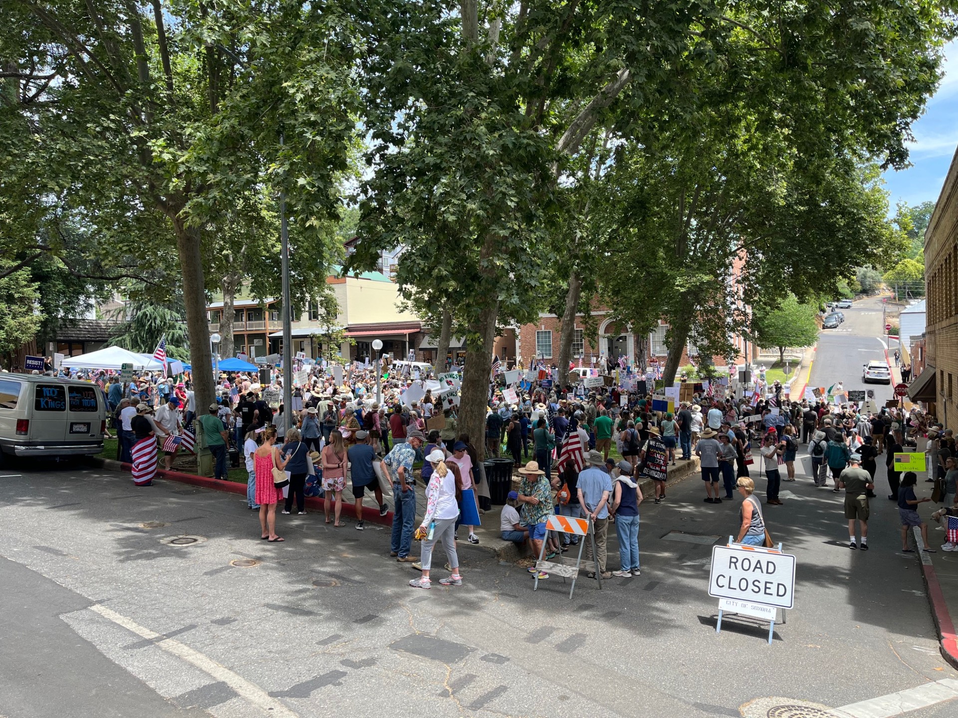 Nearly a thousand protesters came out in support. Tuolumne County Indivisible organizers stated, “The No Kings movement is a response to increasing authoritarian behavior from President Trump and his allies: defying court rulings, targeting political opponents, eroding civil rights, defunding public media channels, attacking long-established universities, and dismantling essential public services paid for by our tax dollars, all while enriching billionaires and donors.”