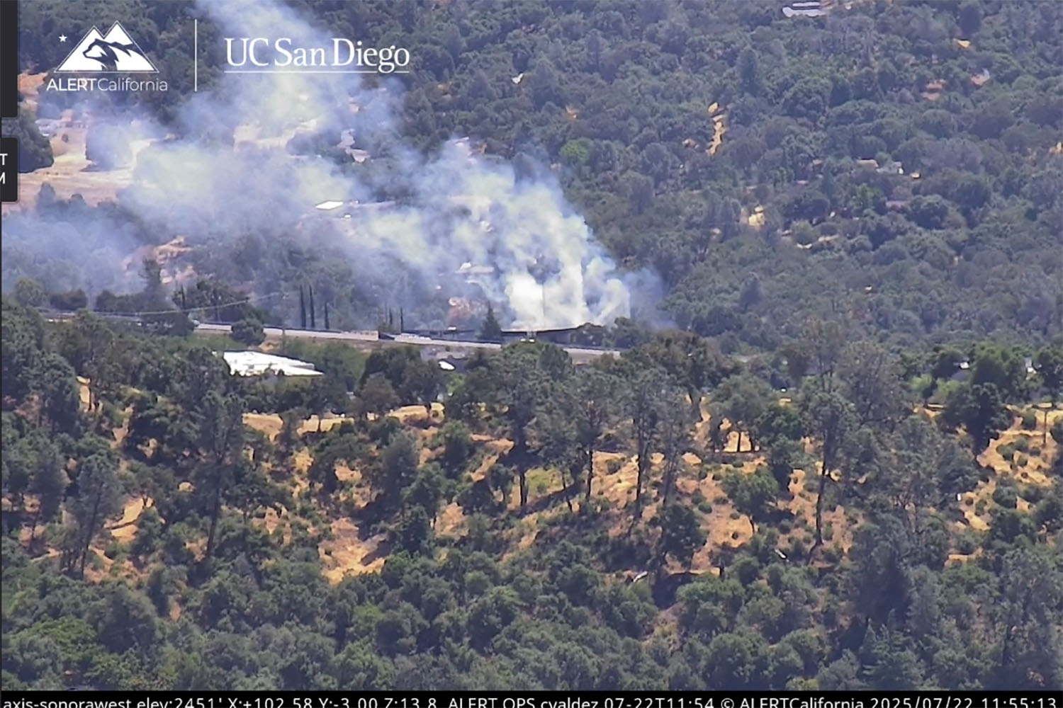 Update at 12:19 p.m.: The Breshears Fire, a vegetation fire that is a quarter-acre in size, with CAL Fire spokesperson Emily Kilgore reporting, “The main fire has not grown; however, several juniper trees are burning and causing small spot fires across the road. She noted that some resources are being canceled. The flames broke out in vegetation in the 13000 block of Sanguinetti Road near the Sanguinetti Loop by the Tuolumne County Transit and Sullivan Creek.