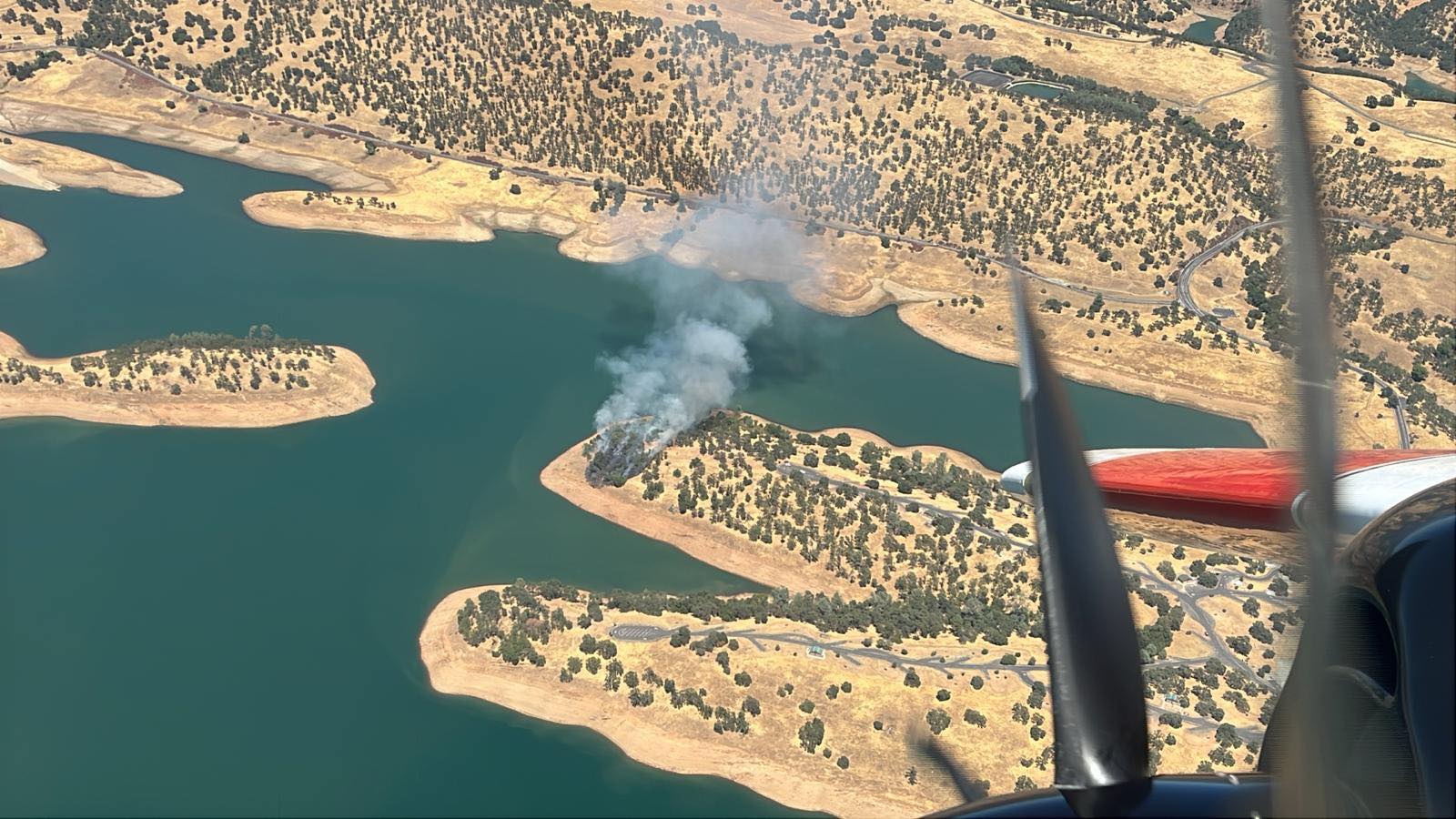 Update at 2:54 p.m.: CAL Fire reports the fire has grown to an estimated 1.5 acres. Spokesperson Emily Kilgore added that it is backing toward the lake away from the campground.