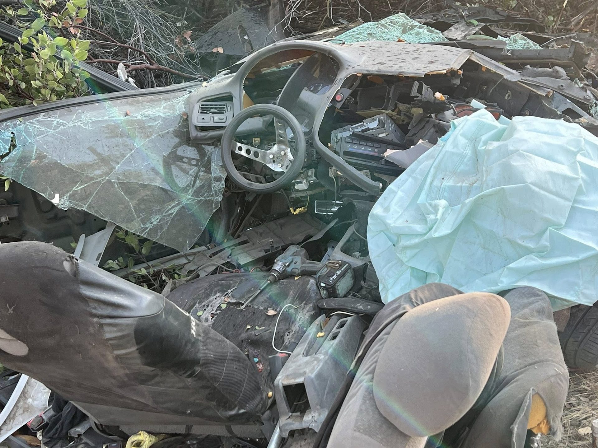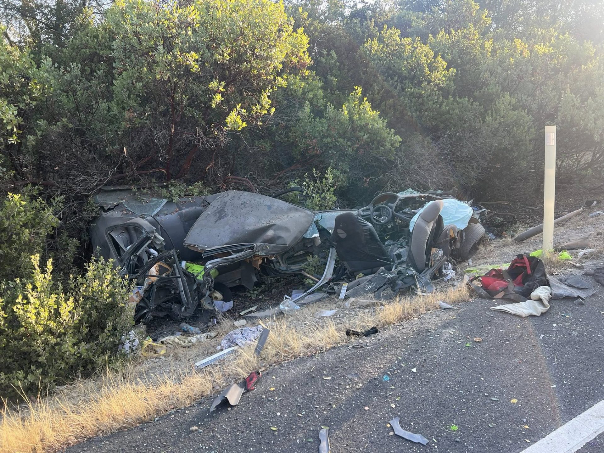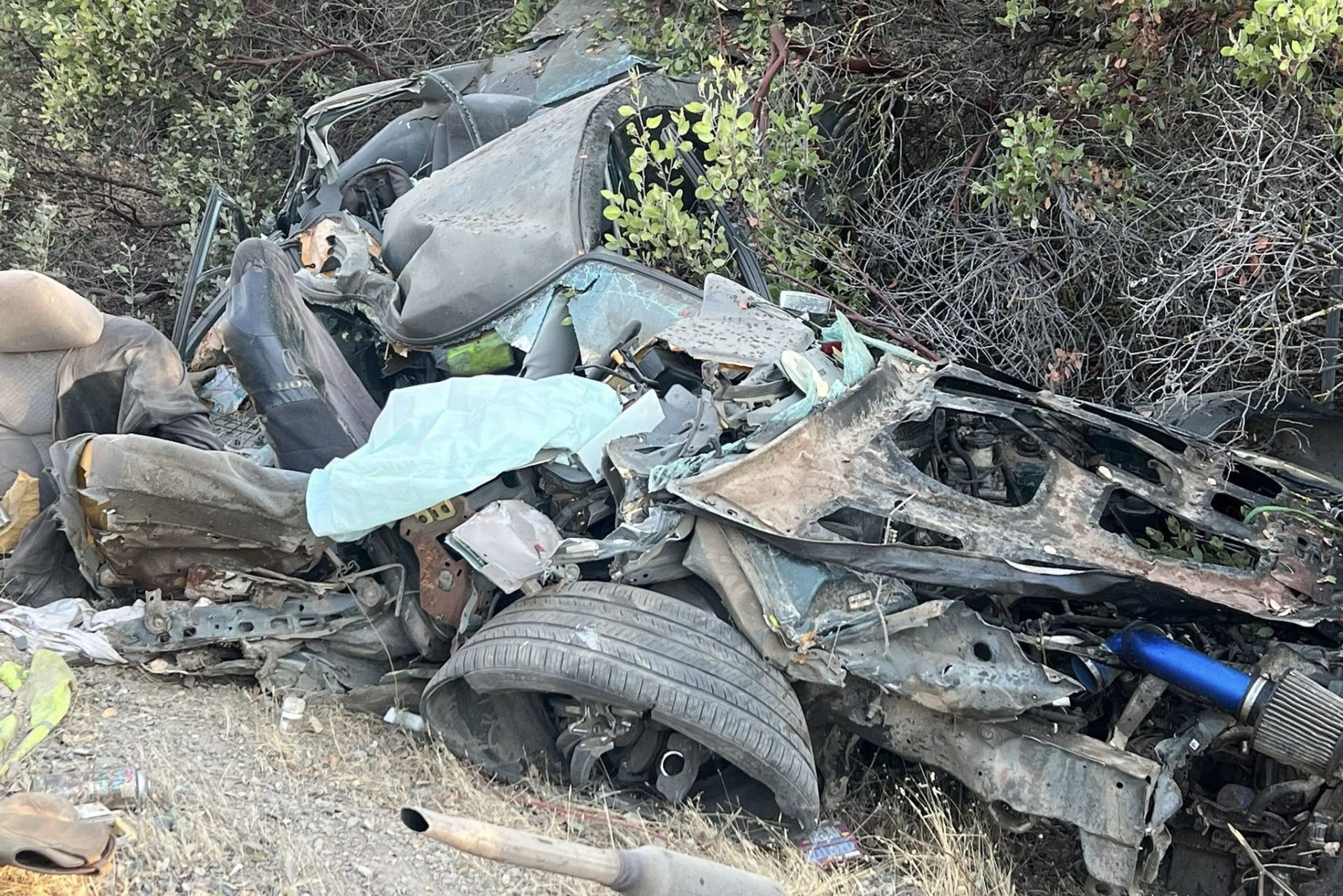 Update at 4:55 p.m.: San Andreas CHP spokesperson Jeremy Cooper responded to our email asking for additional details on the devastating crash this morning on Camanche Parkway South near Burson Road, near the Camanche Reservoir. As we could not make out the type of vehicle due to the damage, Cooper relayed that it was a 1997 Honda Civic sedan. He stated that the collision occurred around 7:22 a.m., and when officers arrived, they discovered the vehicle unoccupied, as the driver had fled the scene before emergency personnel arrived. Cooper continued, “A search of the area yielded negative results for the driver, as well as no walk-ins at the local hospital.”
