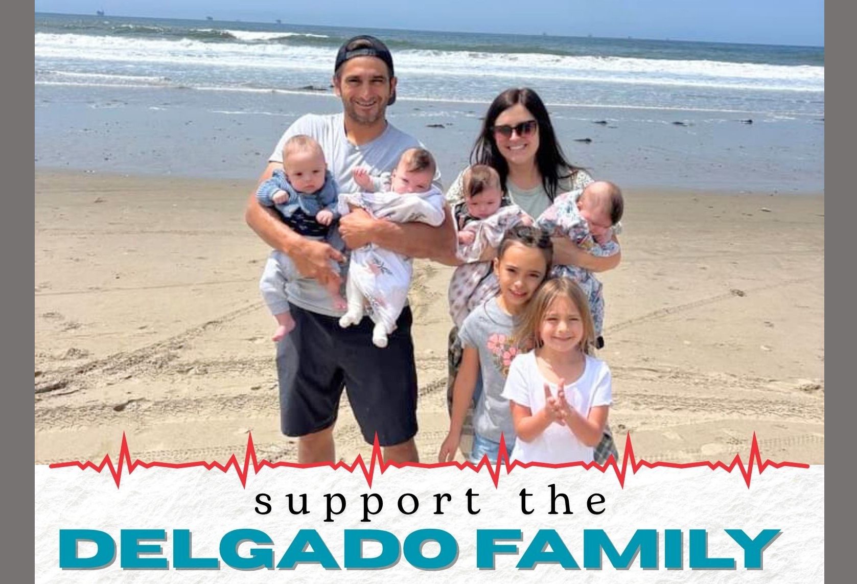 Zeke Delgado is recovering at a rehab facility after multiple skull and back fractures due to a fall while working on a roof. His wife, Kayleen is a stay-at-home mom caring for children Hadassah 9, Eden 5, and 9 month old quadruplets—naturally conceived identical girls Fern, Jane and Kit, and fraternal brother, Royal. Each baby weighed under 2.5 pounds according to UC Davis where the babies were in the Neonatal Intensive Care Unit until January 2025.