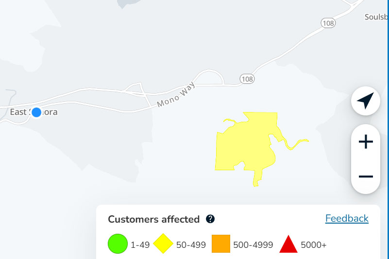 Sonora, CA — Nearly 80 PG&E customers woke up to no electricity this morning.
