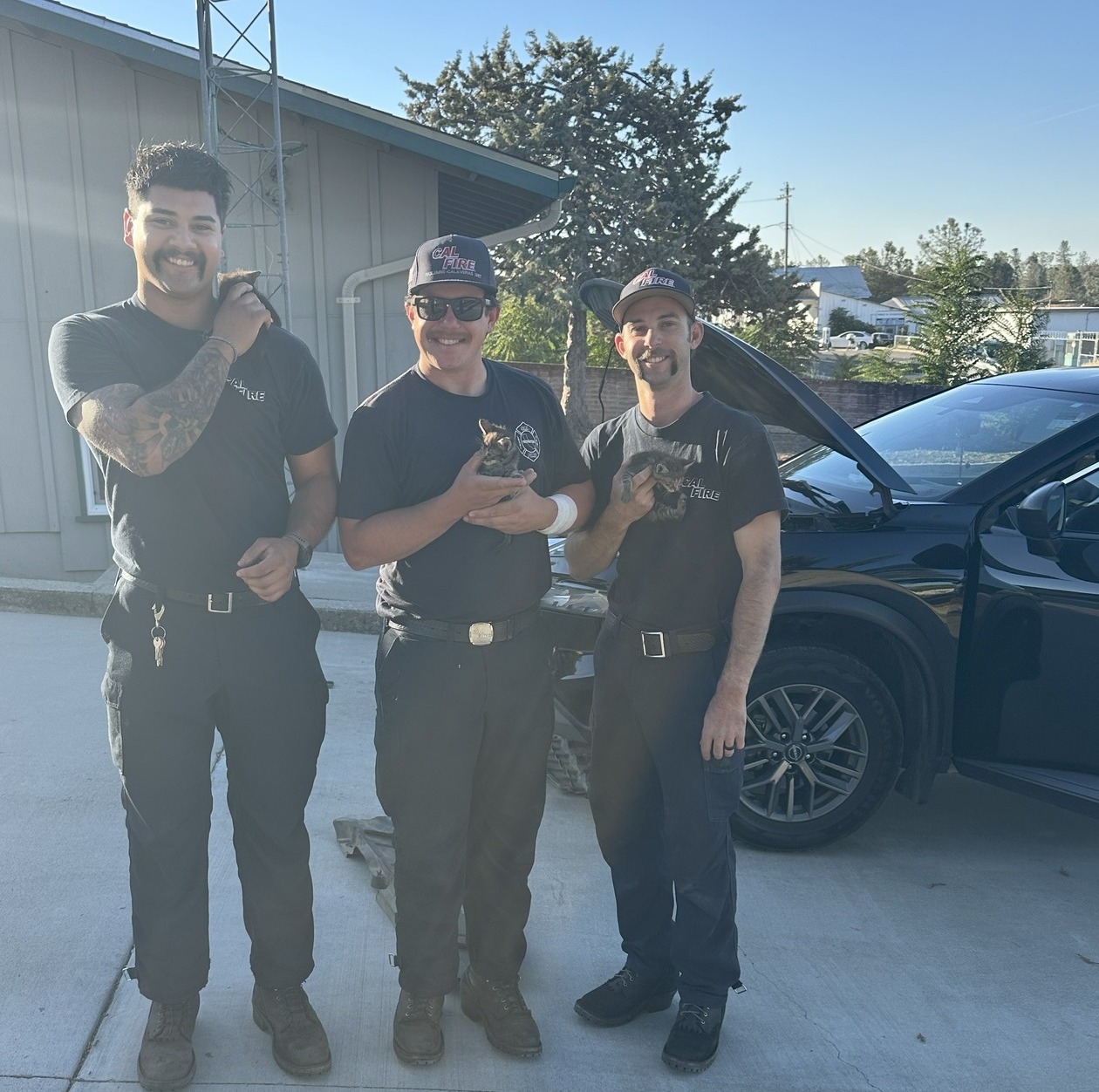 That was the experience of a woman driver on Thursday (8/28), who was confused when she heard what sounded like meows for help. With the CAL Fire TCU-Copperopolis Station nearby, she pulled over to see if the firefighters could assist her in uncovering the mystery.