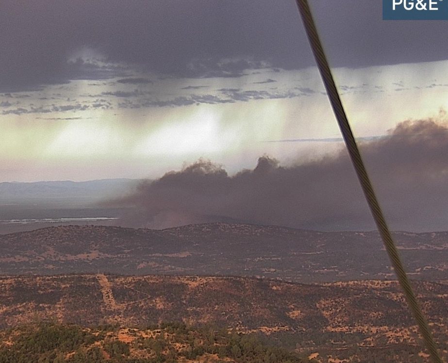 Update at 10:52 am: In addition to the larger incidents, there have been smaller lightning-caused fires in other parts of the Mother Lode. CAL Fire Tuolumne-Calaveras spokesperson Emily Kilgore says there have been 13 fires in the unit, to this point. The largest is the 1,200-acre “2-2 Fire” near Highway 4 and Dutton Road. Highway 4 remains closed in both directions, near the fire. The second biggest is the “2-3 Fire” on O’byrnes Ferry Road, which is around 30 acres. The third is the 2-4 Fire, which is 25 acres, on Highway 4 near Horseshoe Road. All other fires have been under an acre. Some are just a single tree. Smaller fires have been reported near Don Pedro, Sonora, Groveland, Murphys, Angels Camp, and other areas.