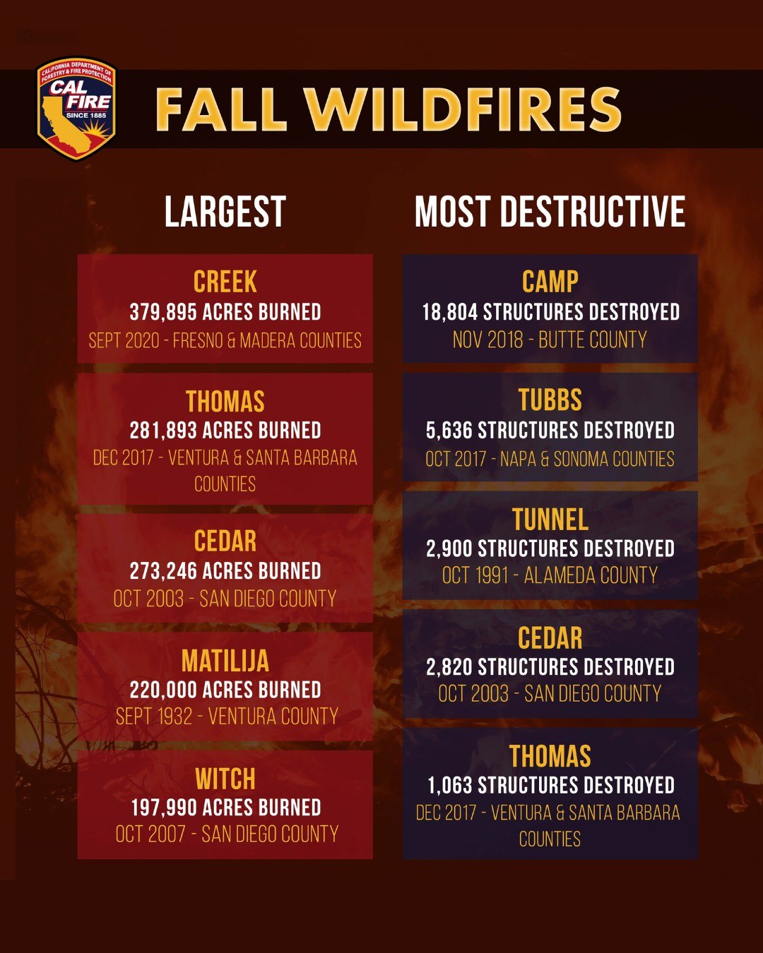 Sonora, CA– CAL FIRE is urging residents to remain vigilant as fall conditions continue to pose a high wildfire risk across California.